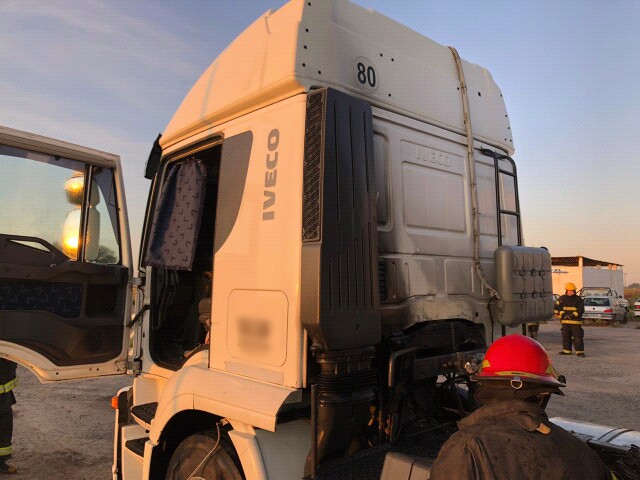 Concurrió al lugar una dotación a cargo del Ayudante Mayor Federico Garberi, con las unidades número 1 y 8. Arribados al mismo se constató que se trataba del incendio extinguido del motor de un camión Iveco el cual afectaba la instalación eléctrica y mangueras del fluido hidraúlico del mismo. Se procedió a realizar el corte de energía y posteriormente al enfriamiento de la zona afectada, finalizando el servicio a las 07.10 hs.