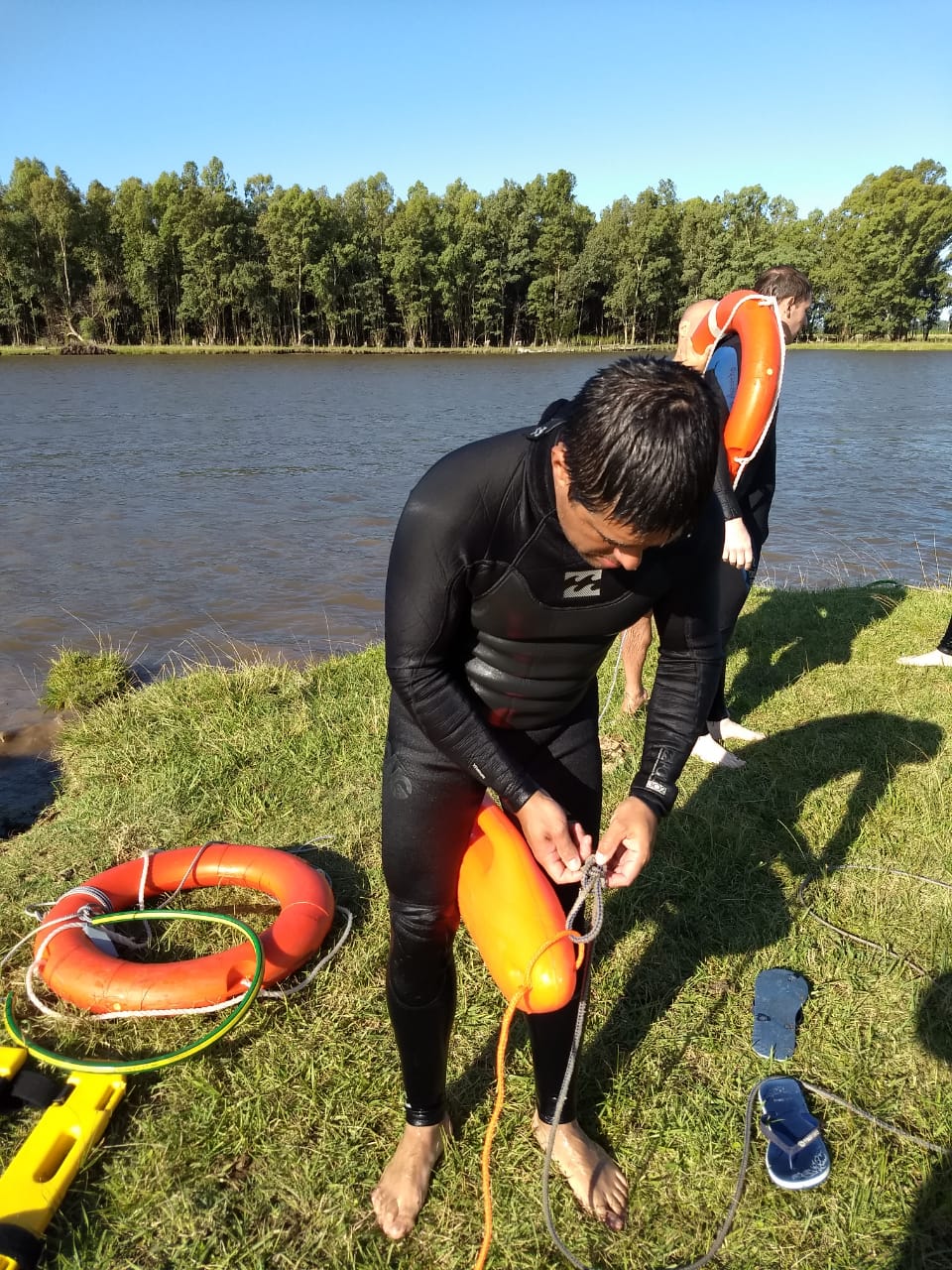Se realizaron diferentes técnicas de rescate en embarcación motorizada, en kayak y a nado por parte de rescate acuático. Como asi también búsqueda de personas vivas dentro de una espesa forestación y en orillas de laguna con los perros en formación.