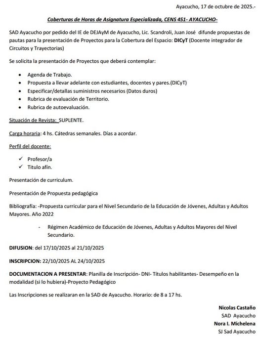 - La fecha de cierre de la postulación se encuentra consignada en el IGE (20/10/2025 – 7.30 hs)