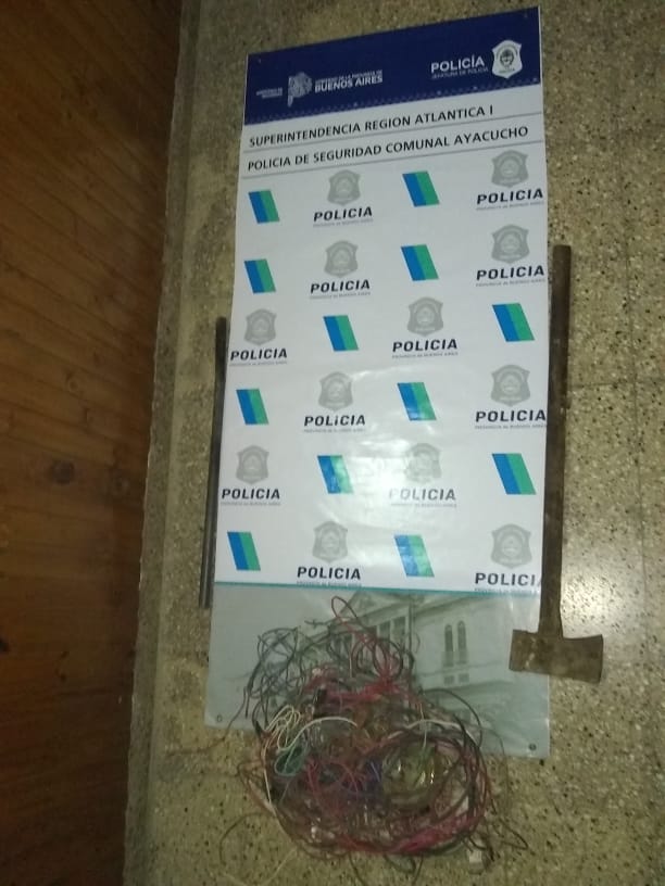 En horas de la mañana se recepciona una denuncia por “ROBO”, dando cuenta que ignorados previo violentar la puerta de ingreso de una vivienda la cual estaba siendo refaccionada en calle 25 de Mayo al 200 le habían sustraído los cables de la instalación eléctrica, un hacha grande y otros elementos, por lo que se realiza la correspondiente investigación solicitando orden de allanamiento en un domicilio de calle Brown al 900, y realizada la diligencia con Sub DDI Ayacucho, arroja resultado POSITIVO.