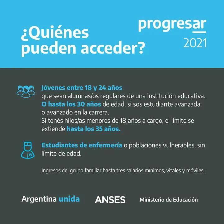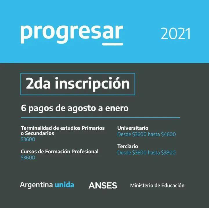 Reabre a la inscripción para las becas PROGRESAR desde el 1 de agosto hasta 31 de agosto. Para aquellos Jóvenes entre 18 y 24 años que sean alumnas/os regulares(educación Obligatoria, Superior y Enfermería) de una institución educativa. O hasta 30 años de edad si es estudiante avanzada o avanzado en la carrera.