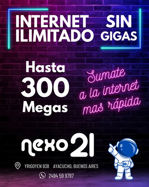 Internet Ilimitado…Sí, con Nexo21 y hasta 300 megas – Consultá al 2494 599797