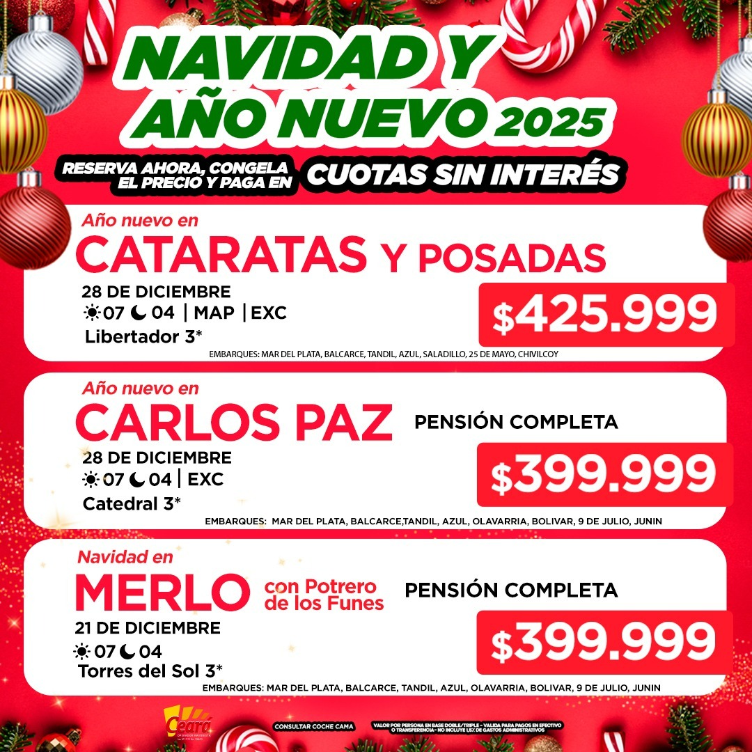Iunik Travel te lleva a que pases una Navidad y Fin de Año inmejorable, en destinos turísticos que aprovecharás en familia o amigos. Reservá ahora, congelá precio y pagá en cuotas sin interés.