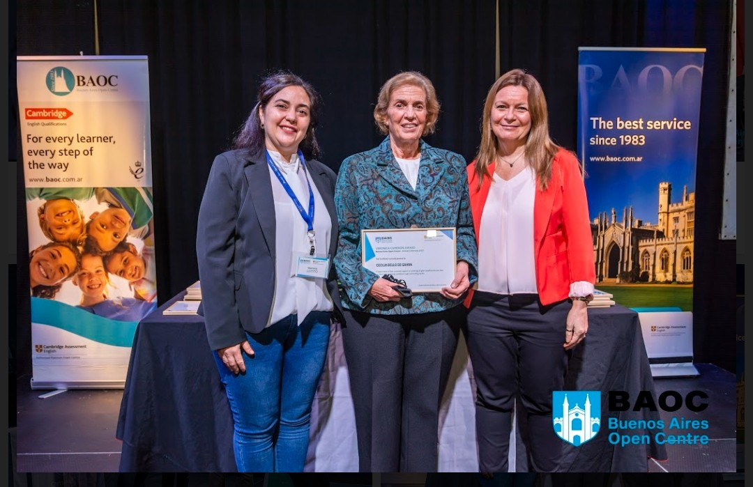 En ese mismo acto, se le entregó otra distinción a su profesora, quién es la reconocida Cecilia Bello de Gahán, quién cuenta con una extensa y reconocida trayectoria como docente de inglés, que también a preparado a muchos jóvenes de la ciudad para distintos exámenes. Felicitaciones para ambos !!!