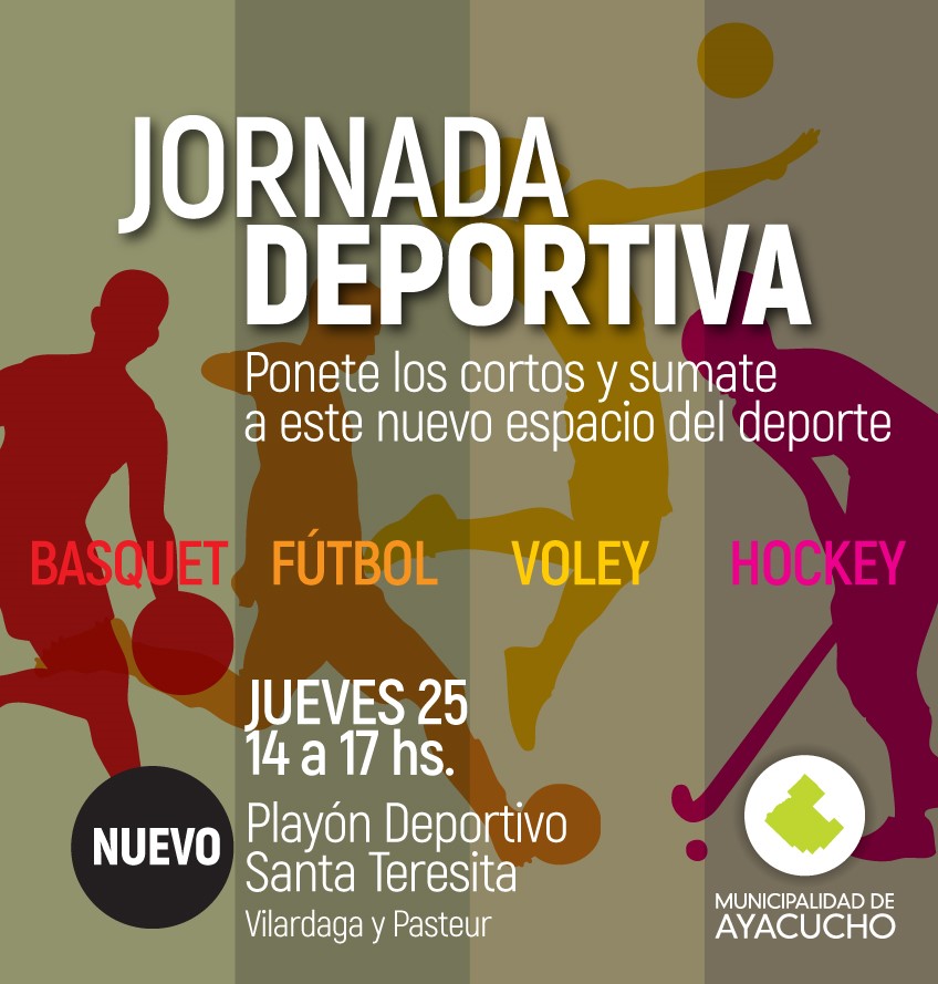 La Municipalidad de Ayacucho invita por este medio a toda la comunidad a seguir disfrutando de las actividades en vacaciones de invierno, en este caso a la Jornada Deportiva anunciada para este jueves 25 de julio en el nuevo Playón de San Teresita.