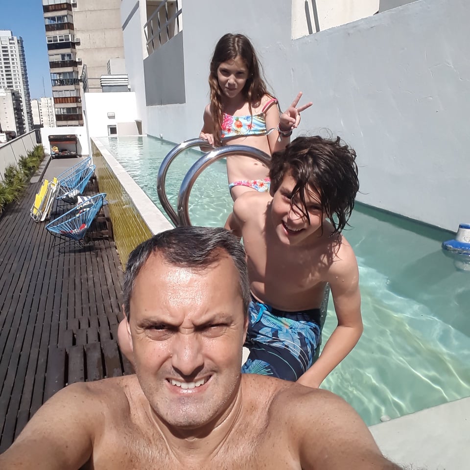 J. C;”Bueno paso los días de cuarentena haciendo parte de mi trabajo aunque muy limitado. Solo puedo gestionar el servicio de administración de alquileres. Que al menos me sirve para pagar algunos gastos fijos de mi pequeña empresa. Cuando estoy con mis hijos Franco (14) y Helena (9) nos entretenemos mucho con la tecnología. La cuarentena sin wifi ni el Smart sería más sacrificada jaja. Y mucho zoom para estar cerca de amigos y familia”.