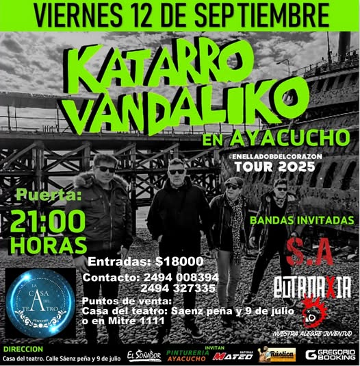 Ayacucho. ## viernes 12 de. Setiembre###…Llega la leyenda del punk rock a la Casa del Teatro.### katarro vamdaliko##30 años# presentando su nuevo trabajo discográfico, el lado b del corazón##