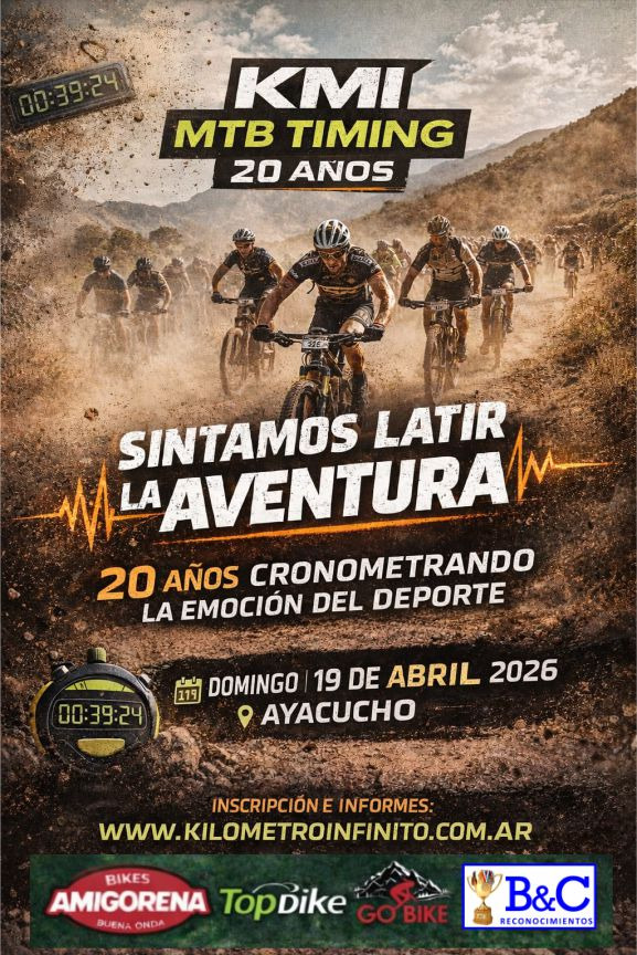 La entidad local Kilómetro Infinito y el Ateneo Estrada realizarán este domingo 19 de Abril, una competencia de Rural Bike con la cual festejarán los 20 años en la organización de eventos deportivos de aventura.