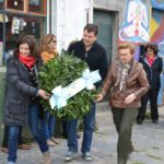 Luego, el Director Municipal de Educación, Prof. Marcos Varretoni, junto a la Directora de la Biblioteca Pública Municipal y Popular “Manuel Vilardaga”, Teresa Fuentes y la ex docente Olga Franco, colocaron una ofrenda floral en la base del busto a Sarmiento.