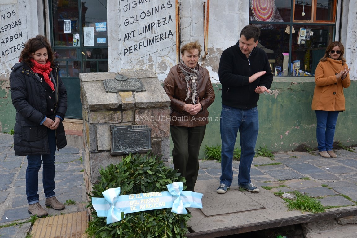 Luego, el Director Municipal de Educación, Prof. Marcos Varretoni, junto a la Directora de la Biblioteca Pública Municipal y Popular “Manuel Vilardaga”, Teresa Fuentes y la ex docente Olga Franco, colocaron una ofrenda floral en la base del busto a Sarmiento.