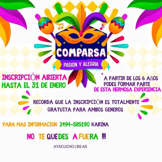 La Comparsa «Pasión y alegría» te invita a sumarte hasta el 31 de Enero 22 enero, 2026 Pablo Tusq Locales, locales DIA 0 Sigue abierta la inscripción No se quedan afuera Súmate a vivir esta hermosa experiencia… X