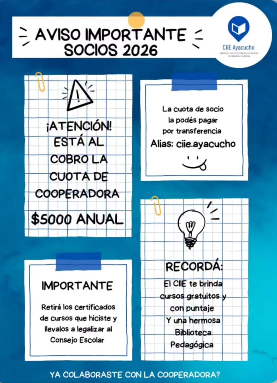 Mandanos tu comprobante al mail ciie006@abc.gob.ar para que podamos registrarte en el libro de socios.