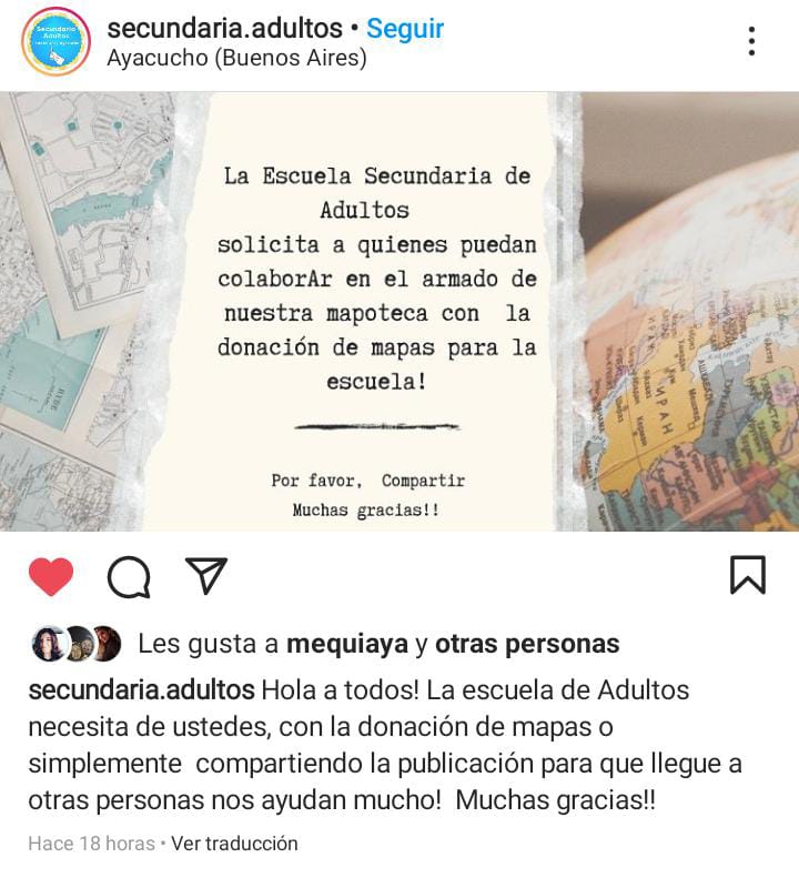 El CENS 451 está solicitando mapas, para podre mejorar las clases con los alumnos que están terminando sus estudios secundarios en la sede que comparte junto a la EP 3 y EES 5.