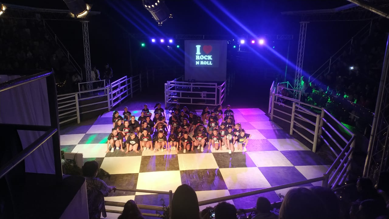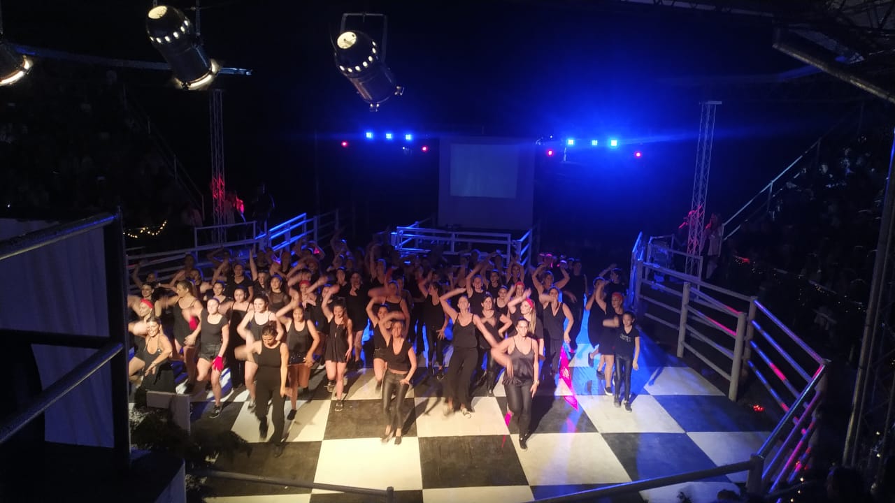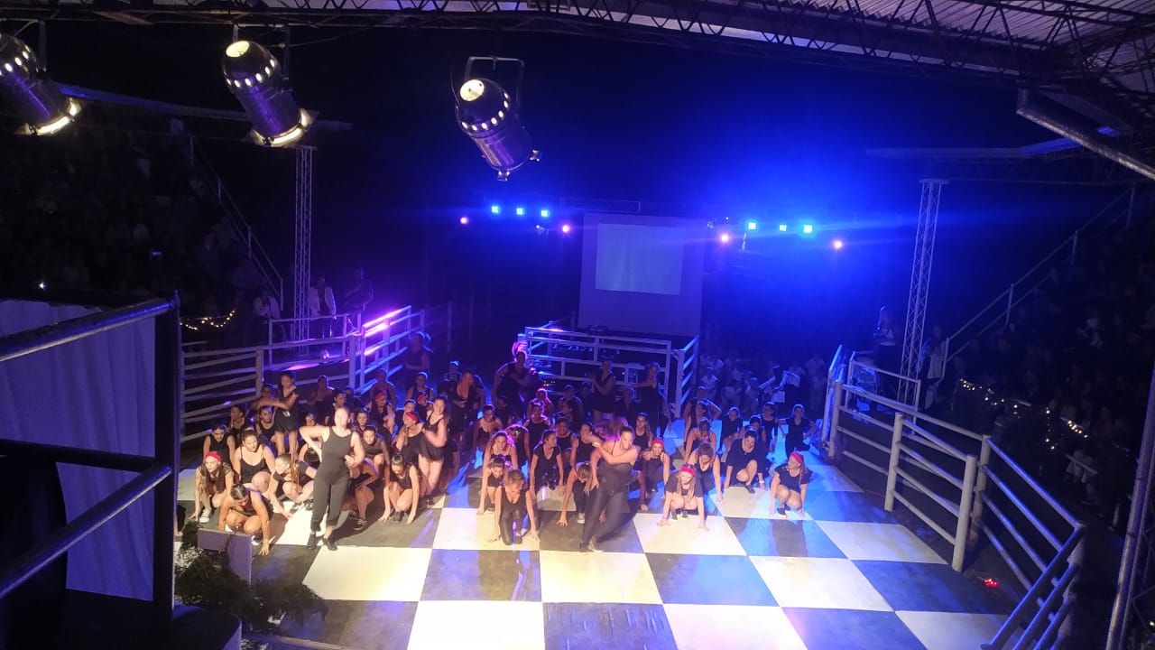 En el escenario central, a las 21 horas, se concretó la presentación de alrededor de 200 alumnas de la Escuela de Danzas Enigma, incluyendo el grupo de niñas, jardín hasta adultas mayores que deslumbraron al público presente.