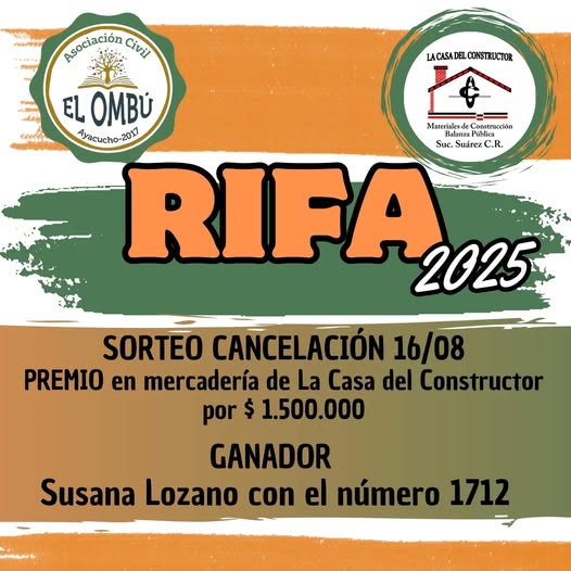 Desde El Ombú anunciaron; 1ero y 2do premio… misma ganadora!!! Felicidades Alicia Curuchet ! Y muchas gracias para todos los que compraron nuestra rifa!!