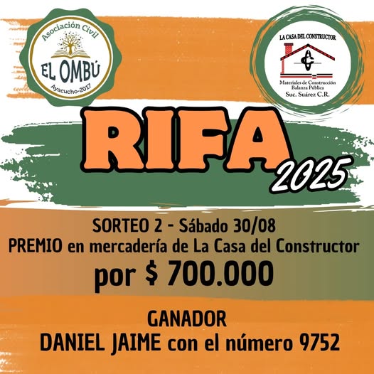 La Escuela «El Ombú» concretó este sábado 26 de Julio, el 1er sorteo de su RIFA 2025, que tiene importantes premios!!!
