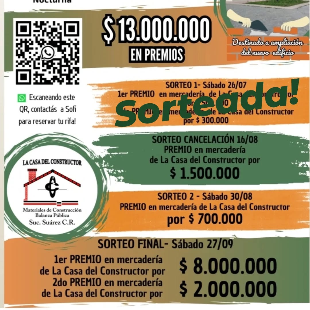 Aún quedan 3 sorteos más que interesantes!! Si no tenés tu rifa podes pedirla por este medio. Gracias a todos!!