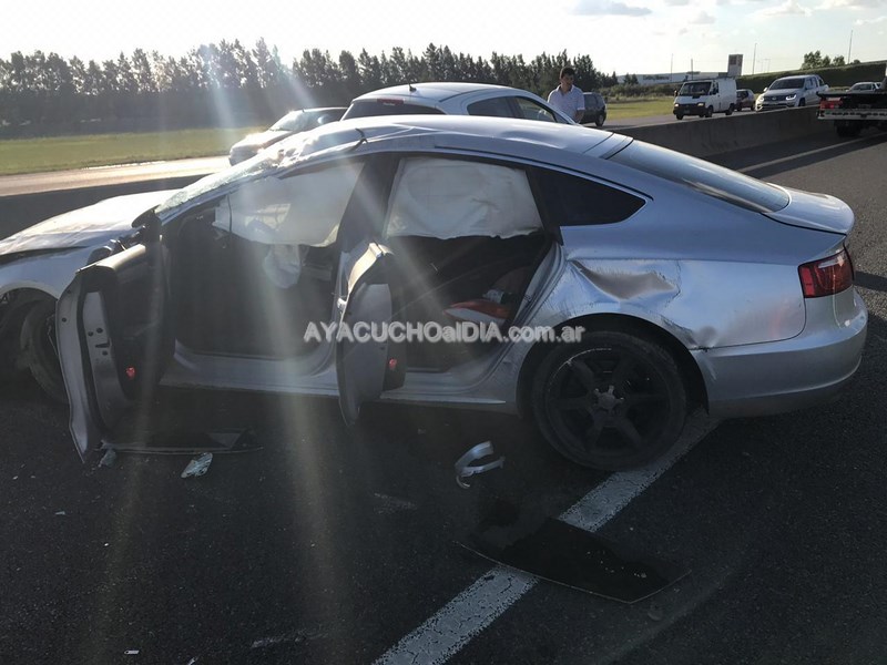 El joven ayacuchense Santiago Culós, junto a su mamá y su hermana, sufrieron un fuerte accidente este Viernes por la tarde en la Autopista La Plata – Buenos Aires, en su auto, un Audi A5. Felizmente sólo tuvieron golpes menores.