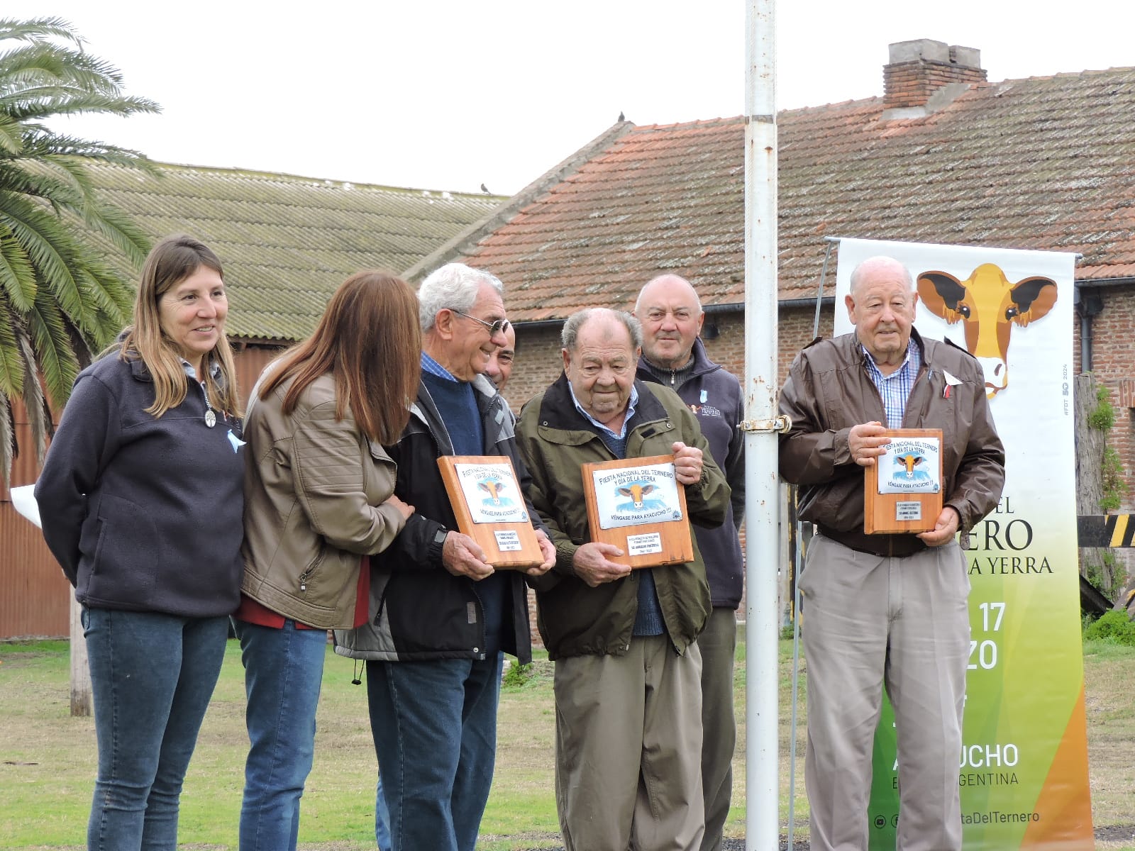 Prosiguiendo el camino a la 50° edición, Bodas de Oro, este domingo 9 de Julio, se realizó un acto en homenaje a los pioneros de los fogones. Por ello, Raúl Etcheverry, Miguel Cestona y Horacio Prezioso fueron distinguidos con la entrega de una plaqueta; acompañados por familiares, vecinos del pueblo y ex presidentes de la fiesta.