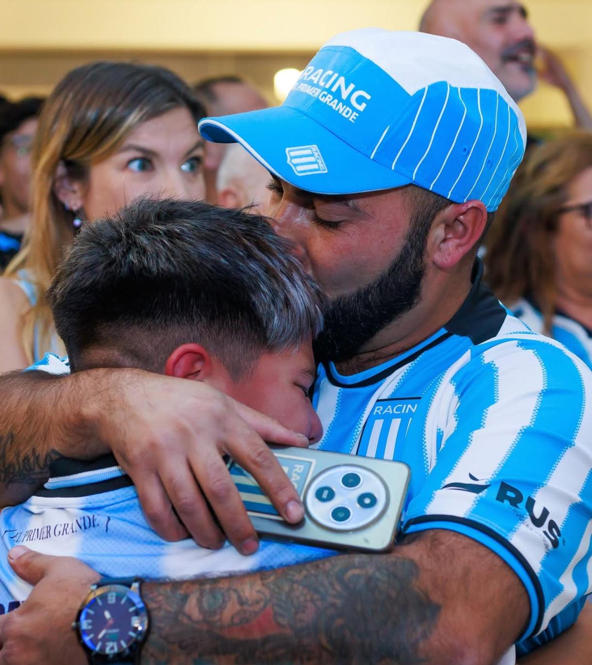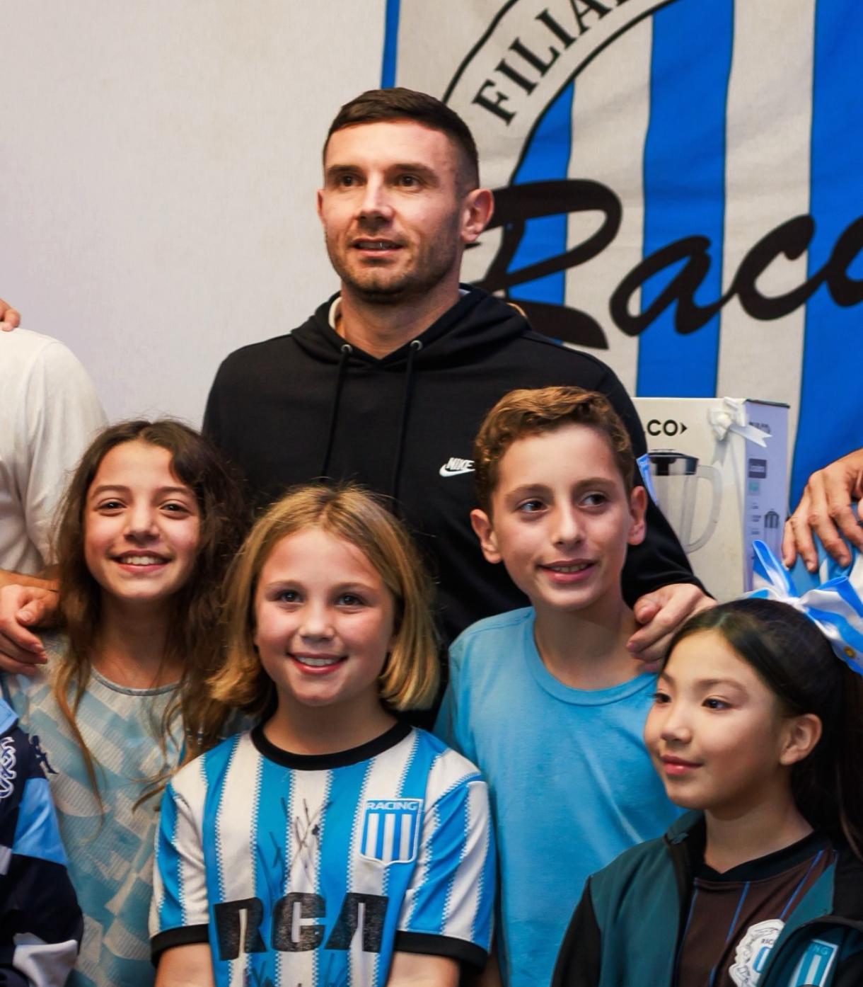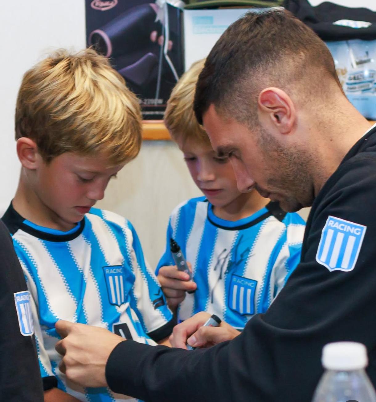La familia racinguista aprovechó para hacerse presente primero en el hotel donde suele concentrar la academia, donde se sacó fotos, pidió autógrafos y disfruto de la estadía de sus ídolos.