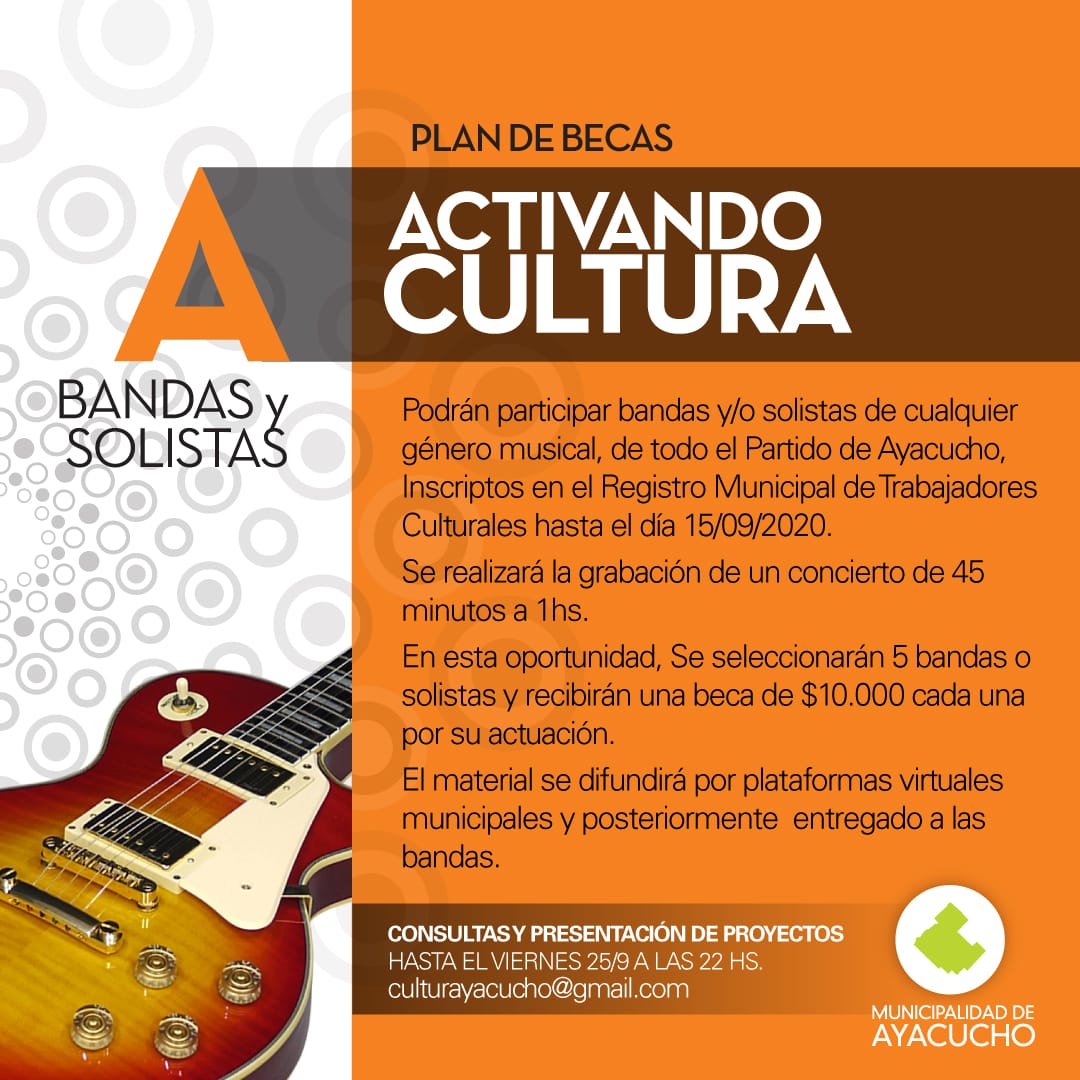 Podrán participar bandas y/o solistas de cualquier género musical, de todo el Partido de Ayacucho, Inscriptos en el Registro Municipal de Trabajadores Culturales hasta el día 15/09/2020.