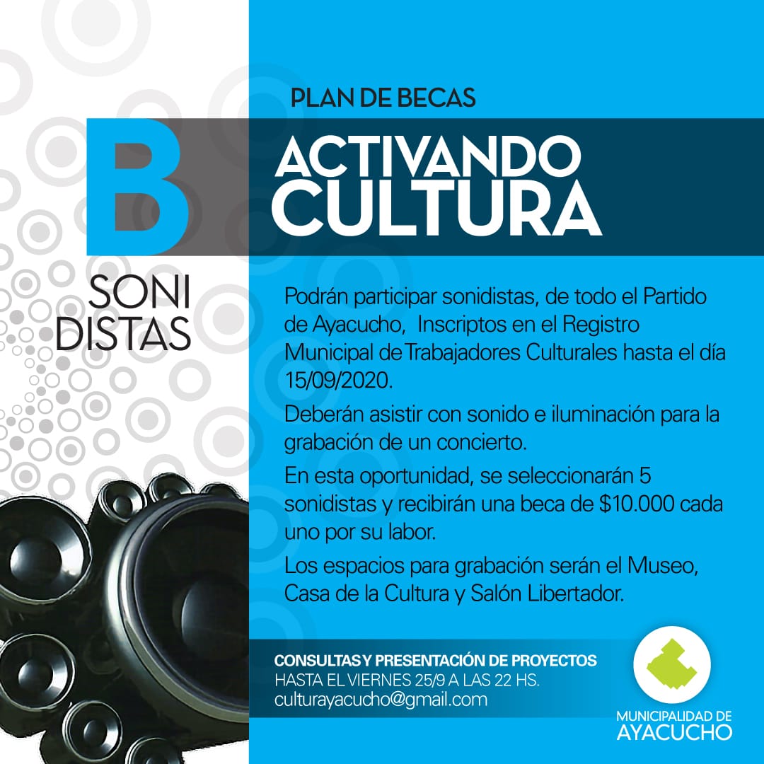 Podrán participar sonidistas, de todo el Partido de Ayacucho, Inscriptos en el Registro Municipal de Trabajadores Culturales hasta el día 15/09/2020.