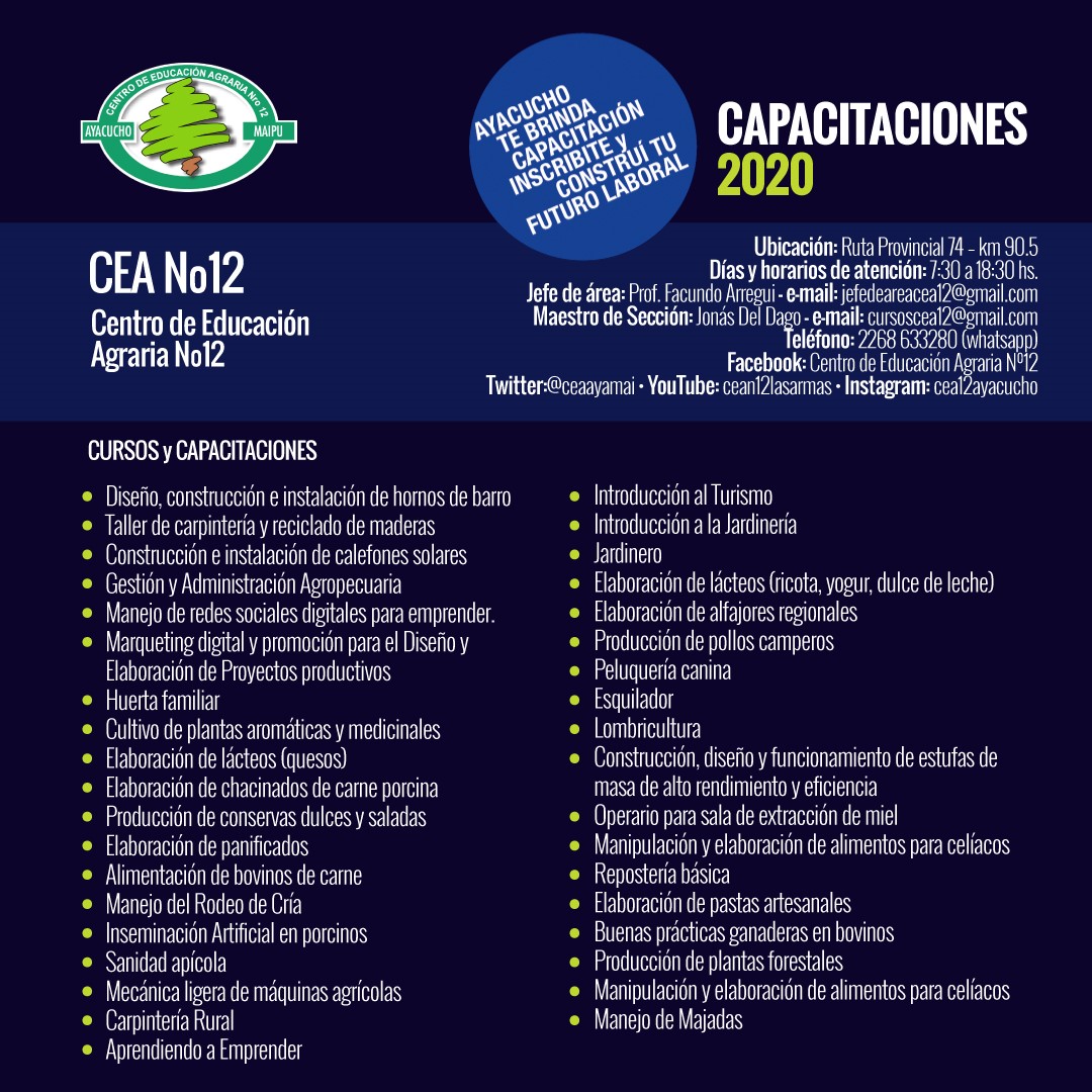 La Municipalidad de Ayacucho da a conocer los diferentes cursos y capacitaciones que se brindan en nuestra ciudad. Hoy compartimos las ofertas del Centro de Educación Agraria Nº 12.