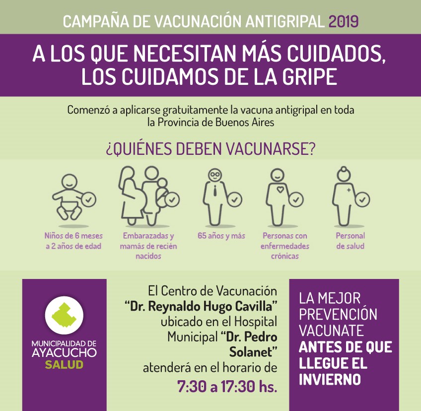 La Secretaría de Salud de la Municipalidad de Ayacucho se suma al lanzamiento oficial de la campaña de vacunación antigripal, que ya arrancó en toda la provincia de Buenos Aires y se extenderá a todo el territorio argentino.