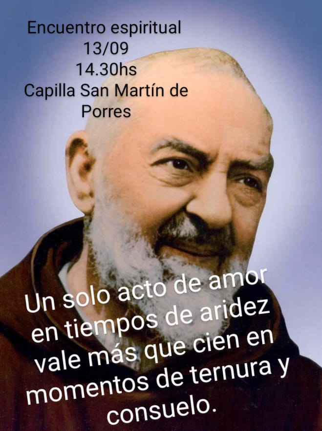 Este sábado 13 de Septiembre compartiremos un momento de espiritualidad en la Capilla San Martín de Porres;