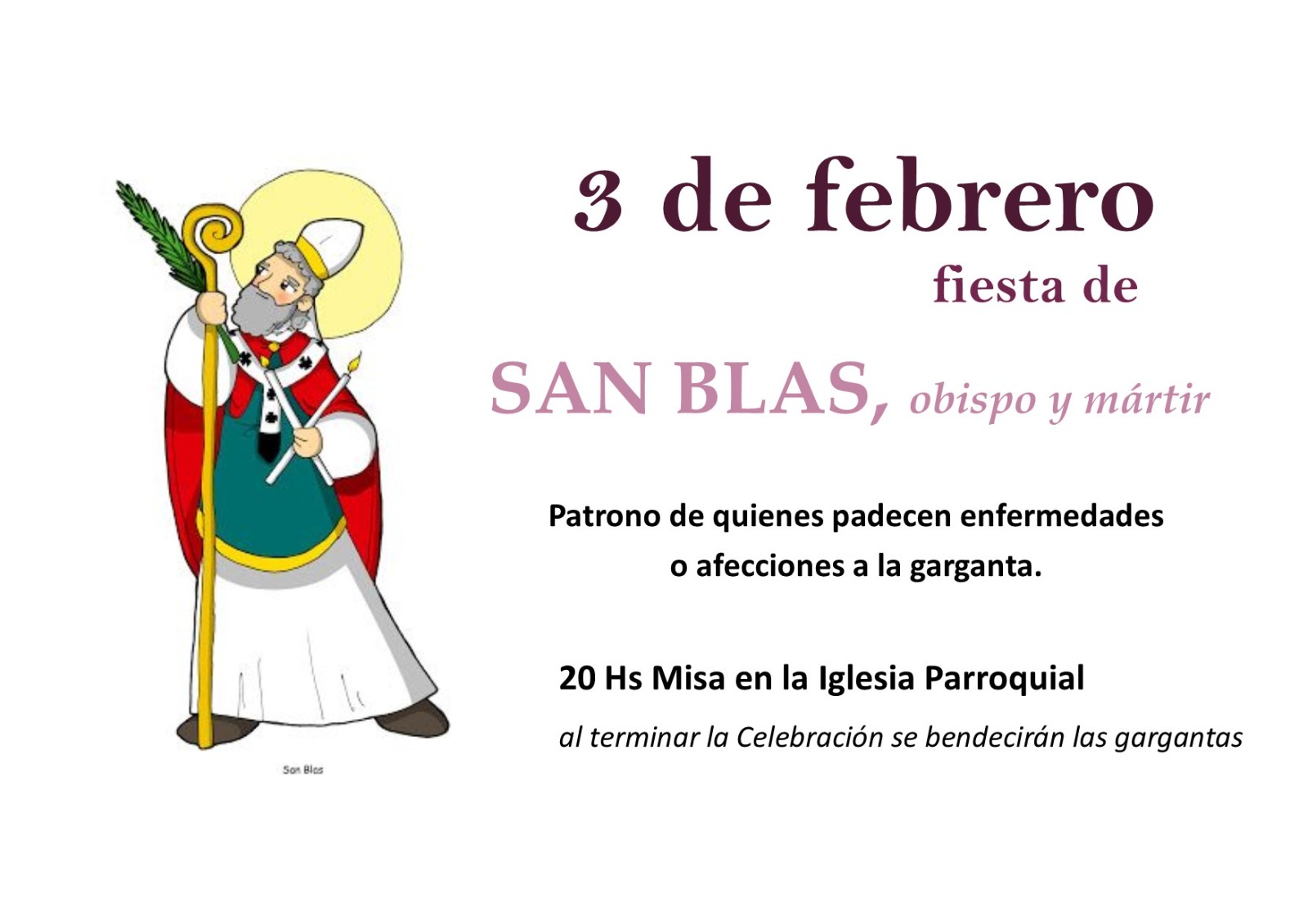 El lunes 3 de febrero fiesta de San Blas, al terminar la Misa de las 20, se bendecirán las gargantas !