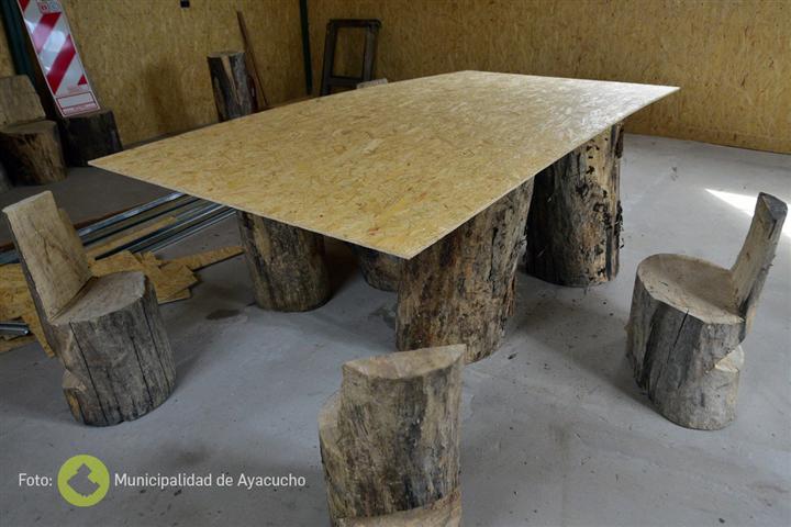 Otro de los puntos sobre los que se ha trabajado es “sobre un tinglado sin terminar, se construyó un sector de usos múltiples para el personal y los visitantes del lugar, construido con madera reciclada, mobiliario de troncos obtenidos de extracciones en la vía pública, y luminarias antiguas, cumpliendo con el objetivo de reutilizar y reciclar”.