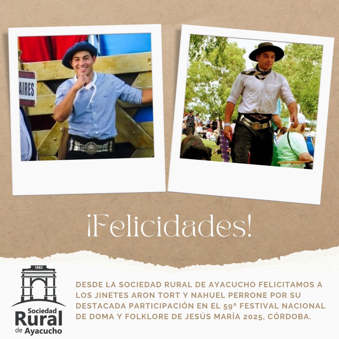 La Rural de Ayacucho felicita a los jinetes Aron Tort y Nahuel Perrone 21 enero, 2025 Pablo Tusq Campo, campo DIA, destacados 0 X