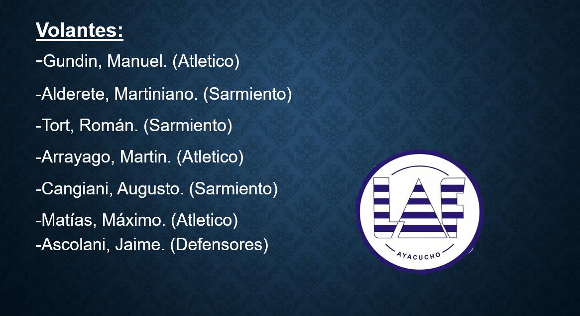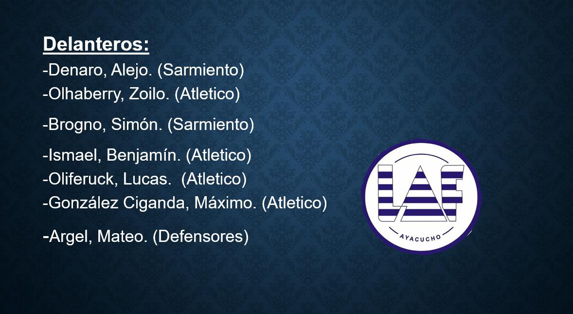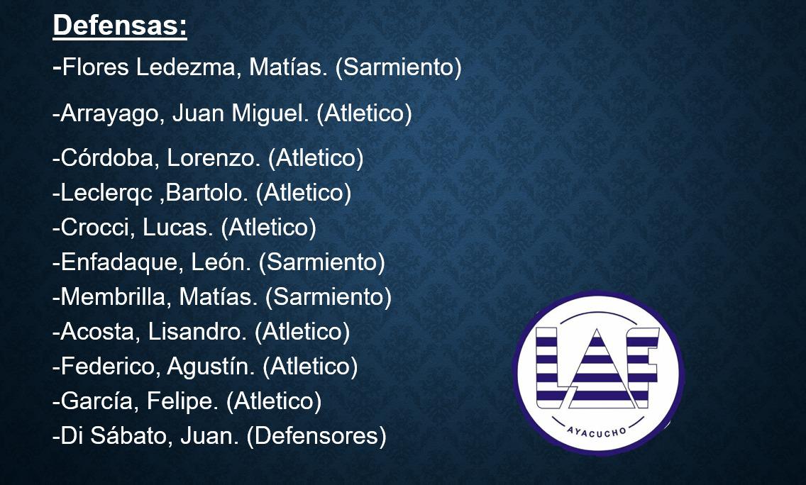 Ayacucho (0): Juan López; Matías Flores Ledezma (M. Álvarez), Lorenzo Córdoba, Juan Arrayago, Matías Membrilla Jacobson (B. Leclercq); Manuel Gundin, Martín Arrayago T. Guevara), Lucas Oliferuck (Z. Olhaberry), Agustín Federico; Alejo Denaro, Máximo Matías (B. Ismael). DT- Lautaro Roldán