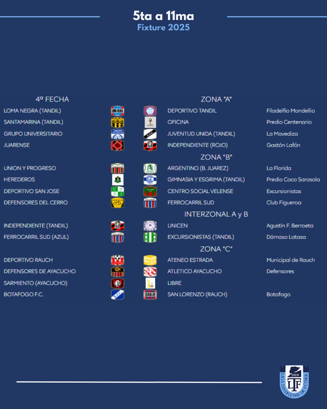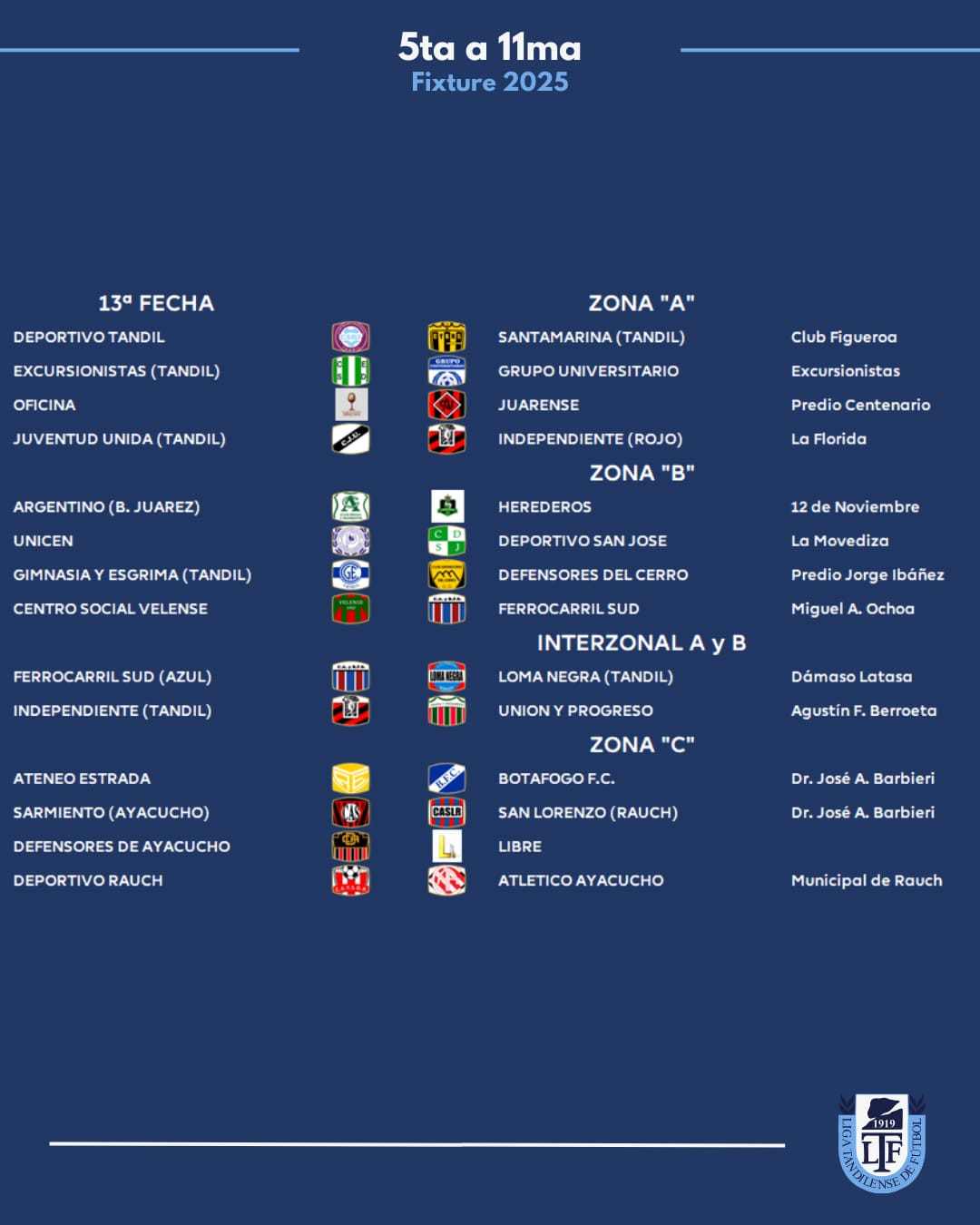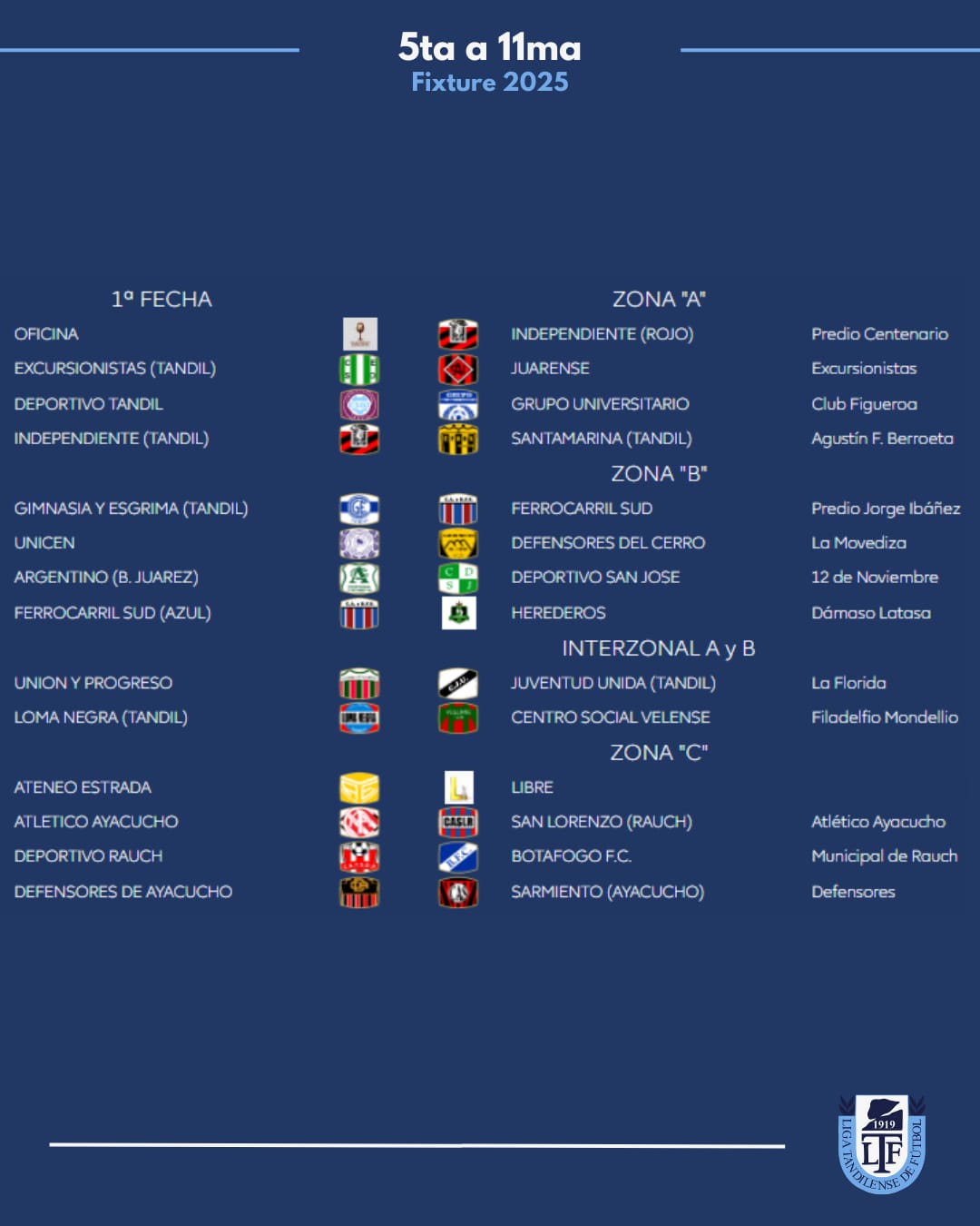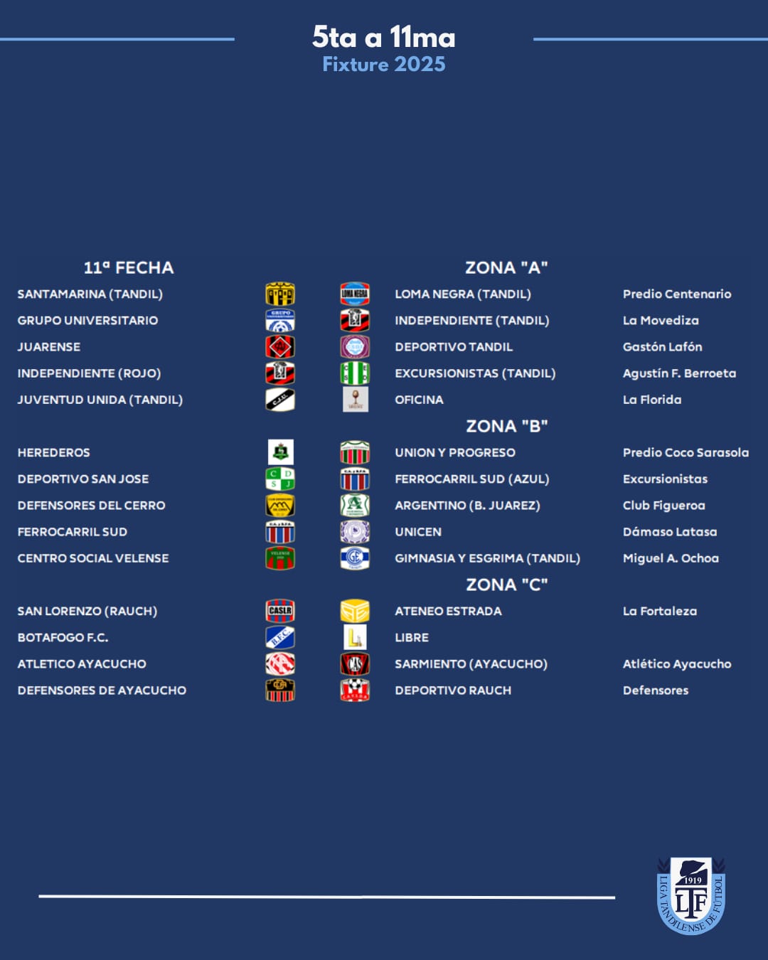 Zona A: Juarez x 1, Loma Negra, Tandil x 8