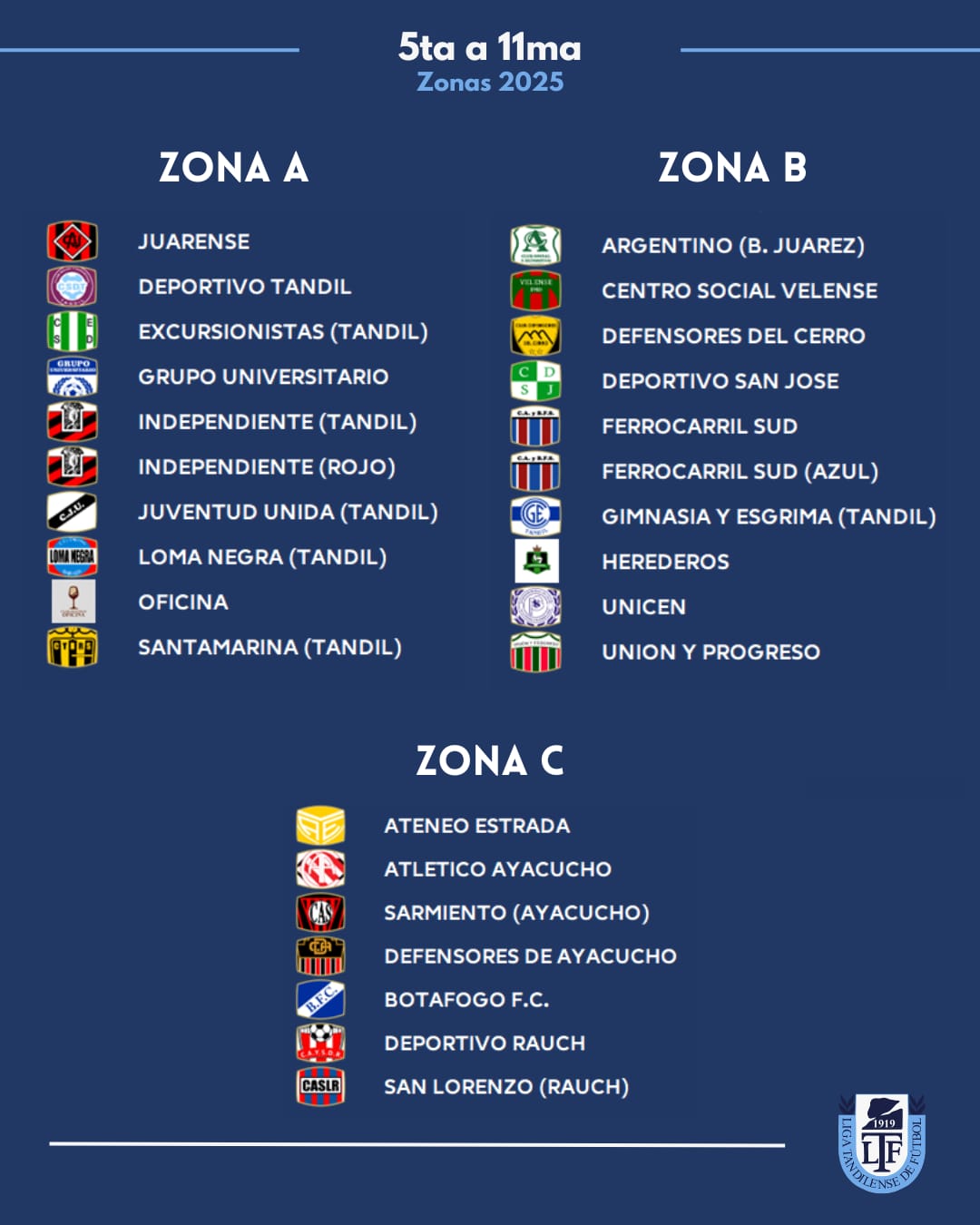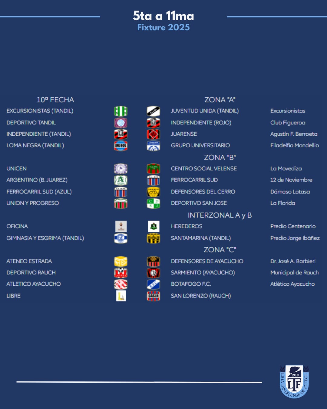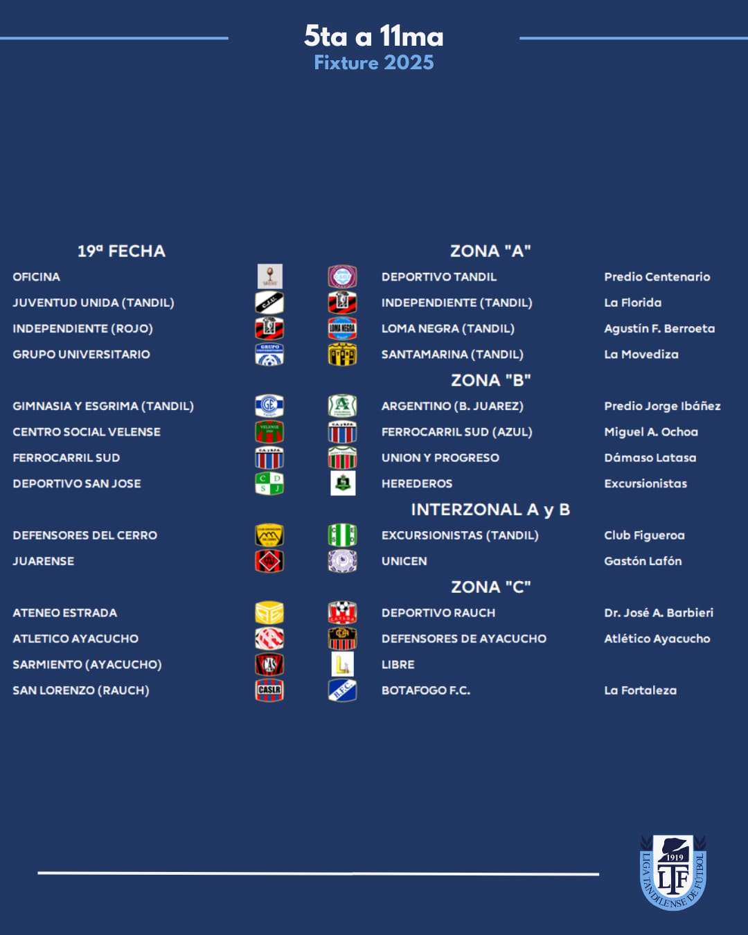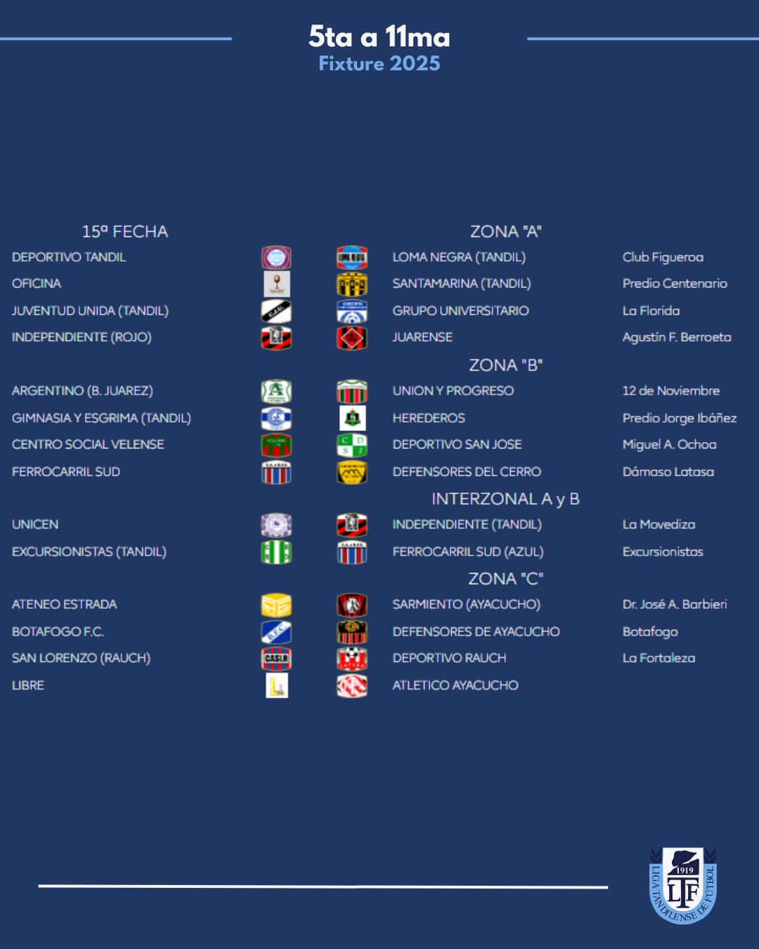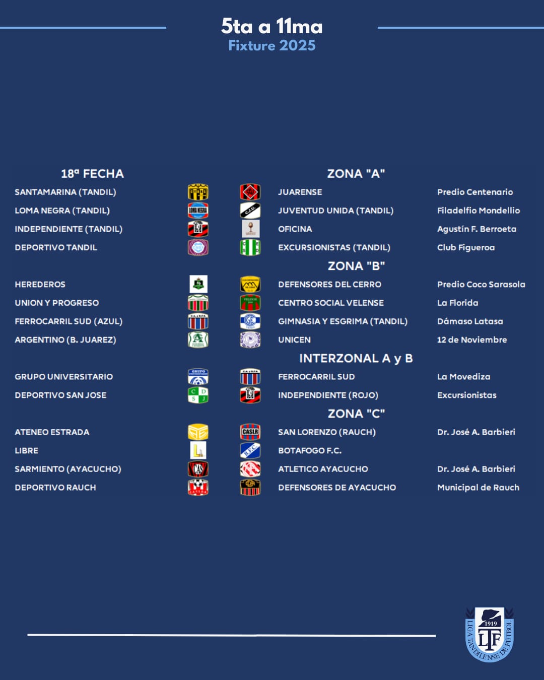 Zona A: Juarez x 1, Loma Negra, Tandil x 8