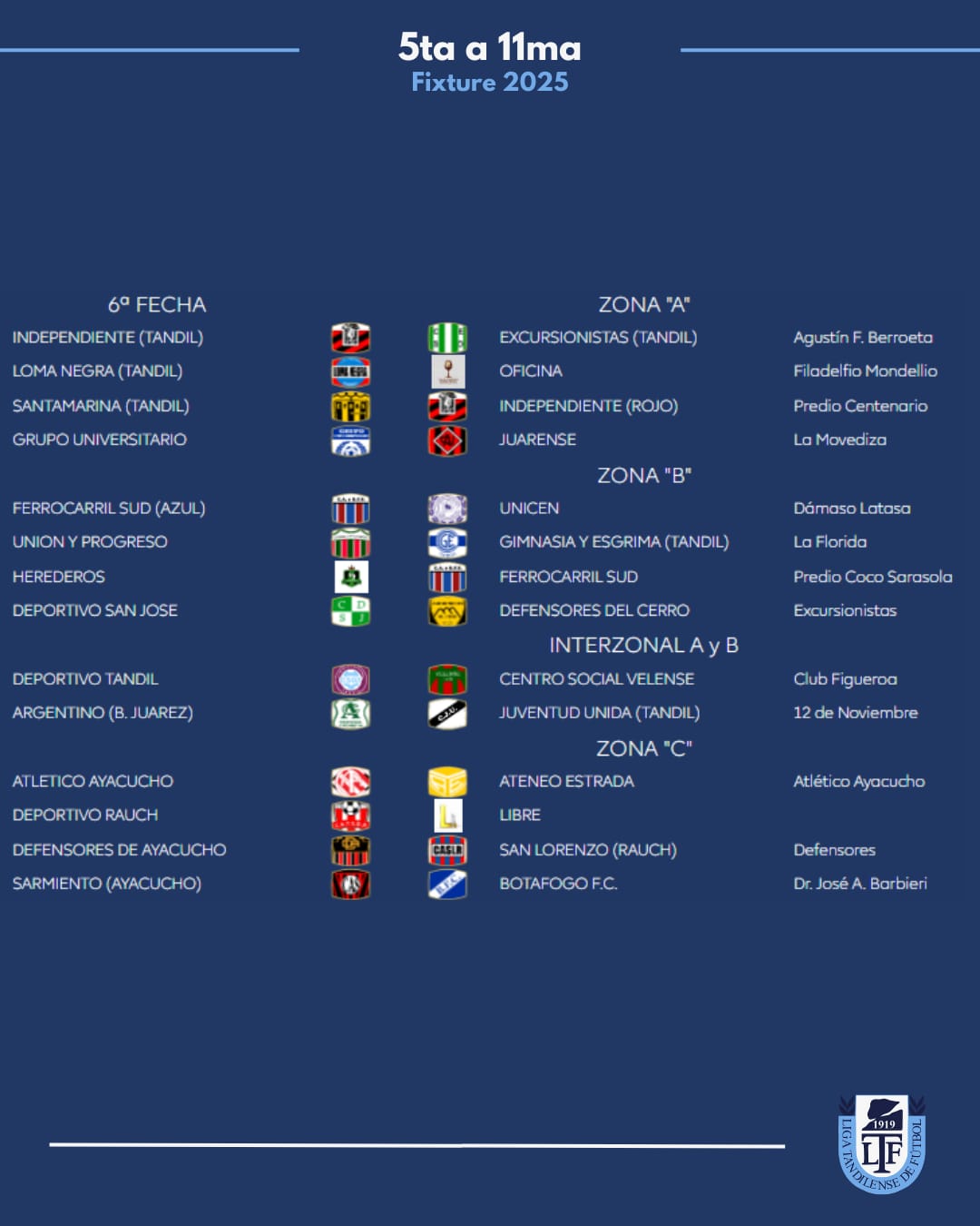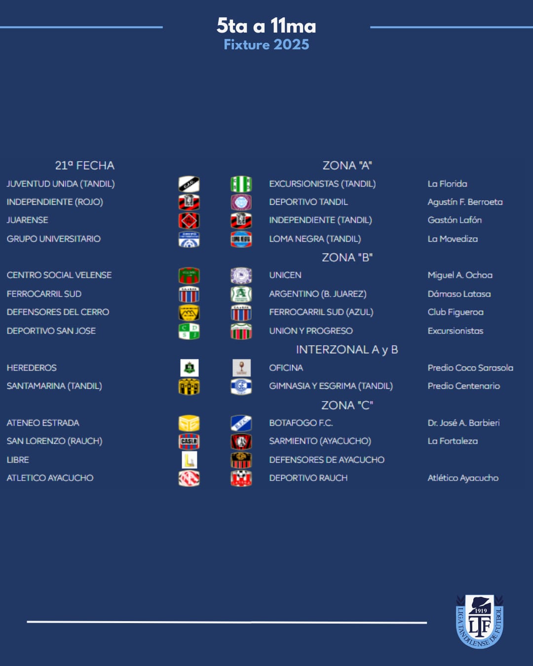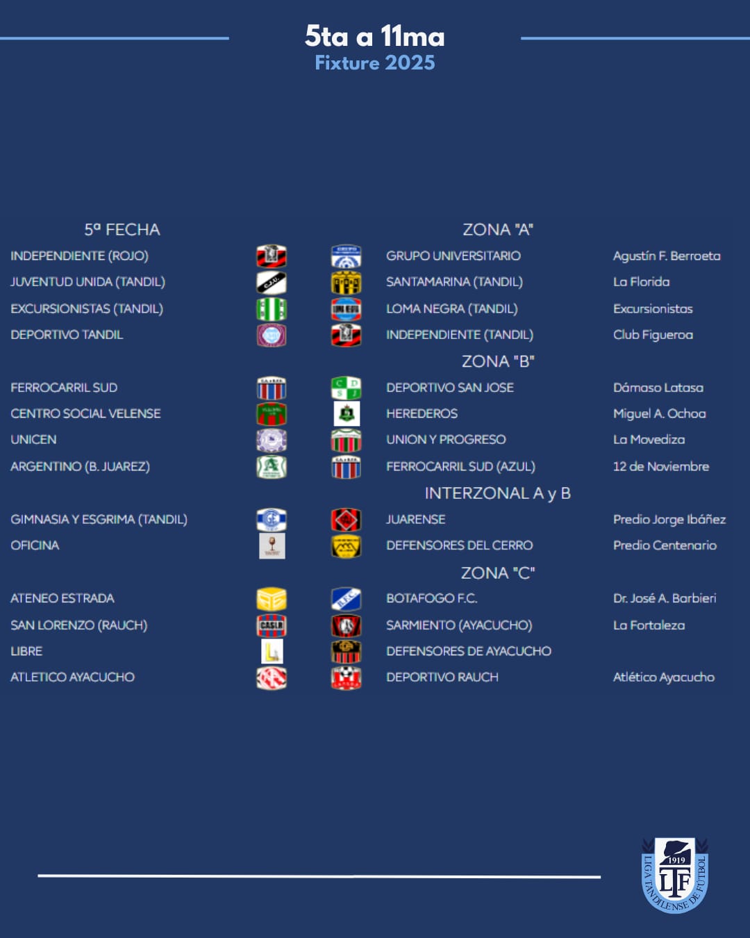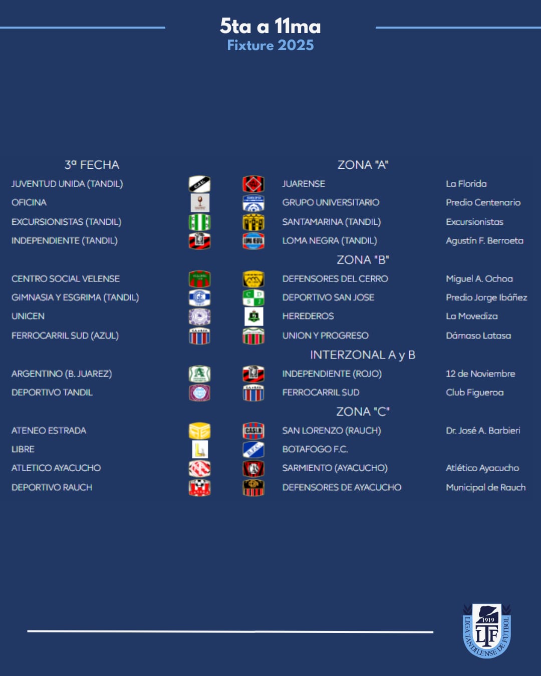 Zona B: Juarez x 1, Velense, Tandil x 8
