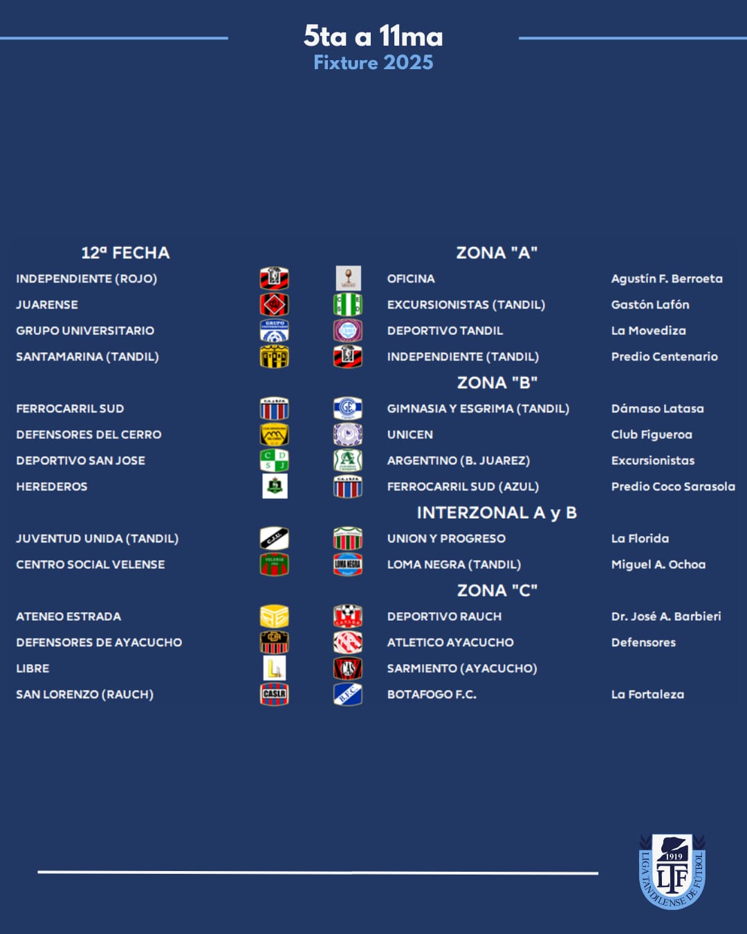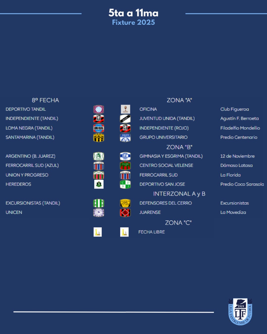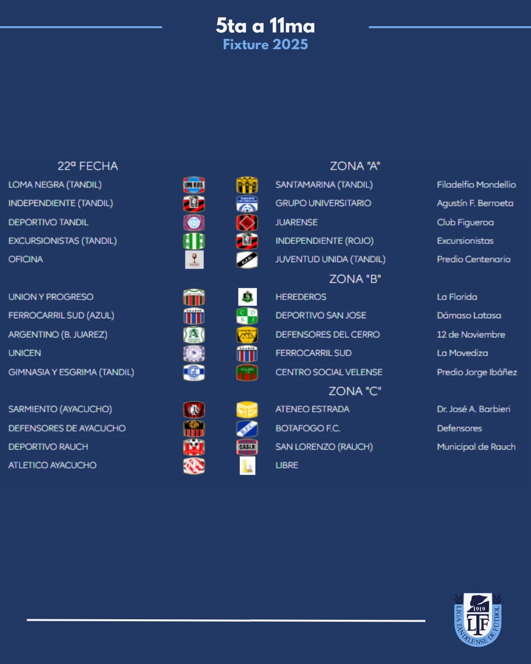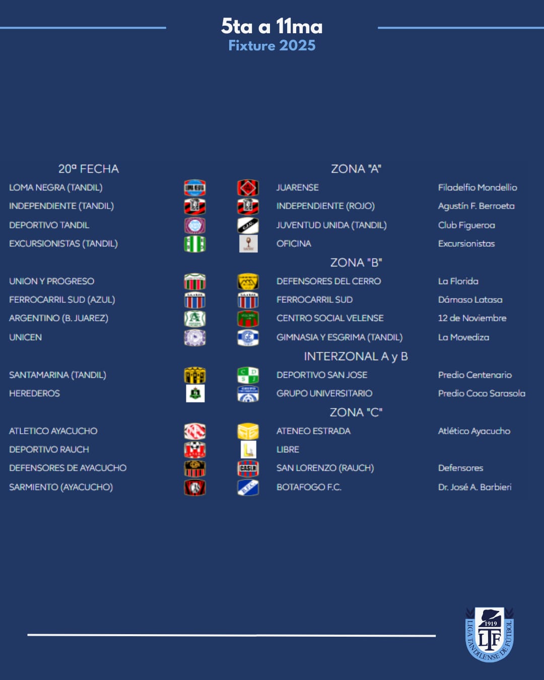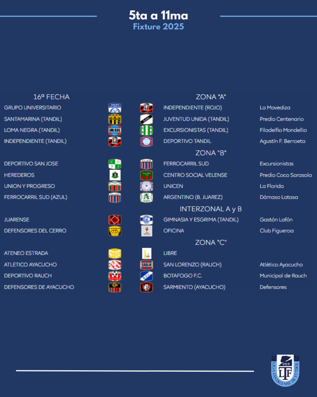 Zona B: Juarez x 1, Velense, Tandil x 8