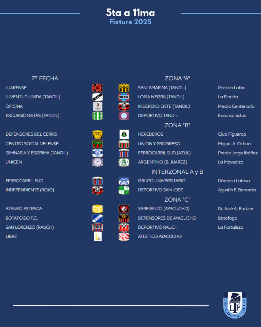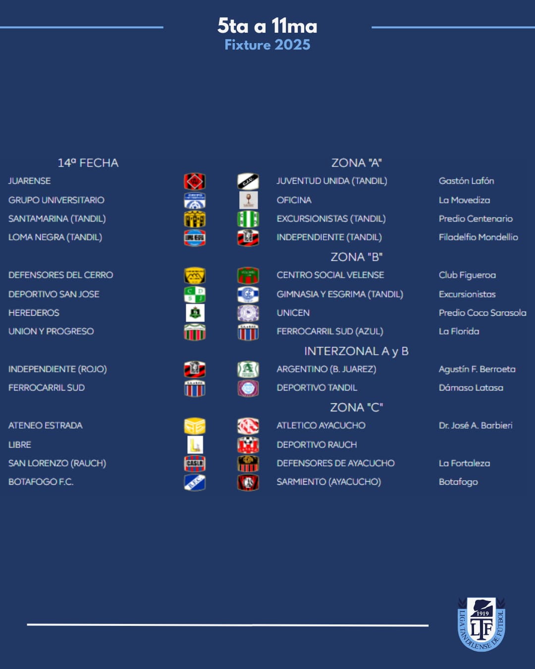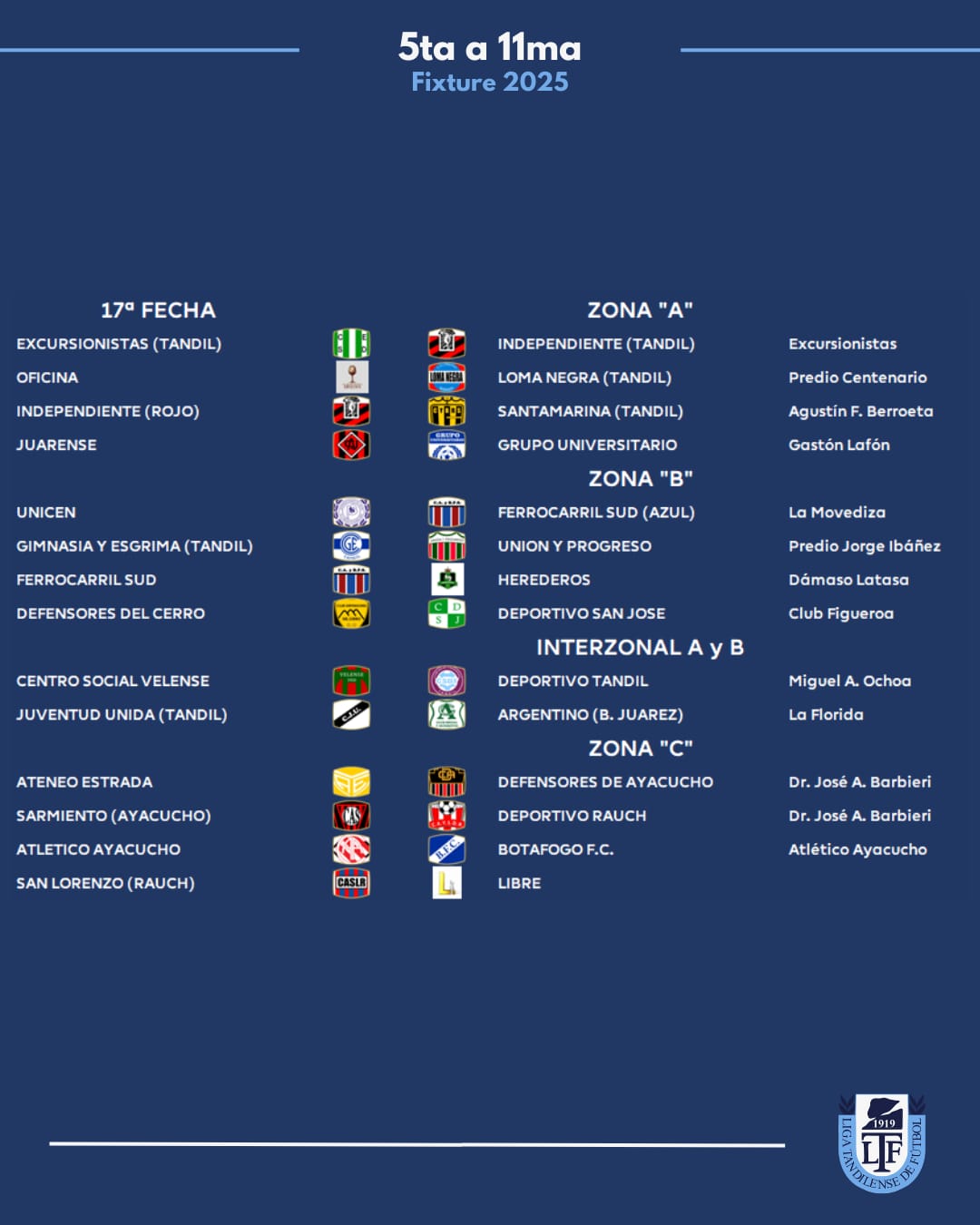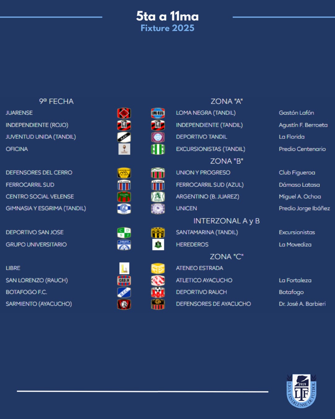 Zona B: Juarez x 1, Velense, Tandil x 8