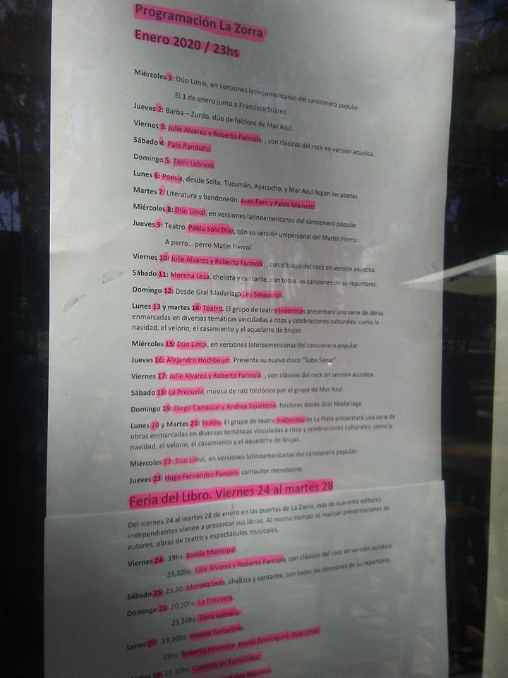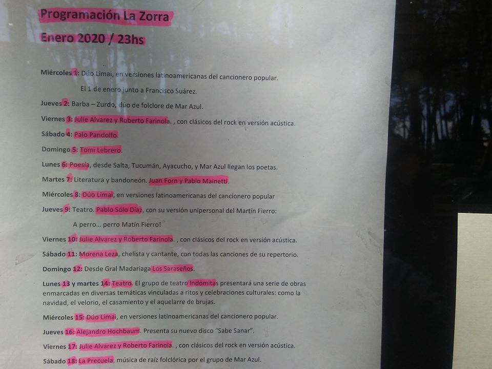En las redes sociales, publicaron; «Muy felices les presentamos la grilla de Enero!!!! Mucha canción, teatro y poesía… cualquier duda consultanos!