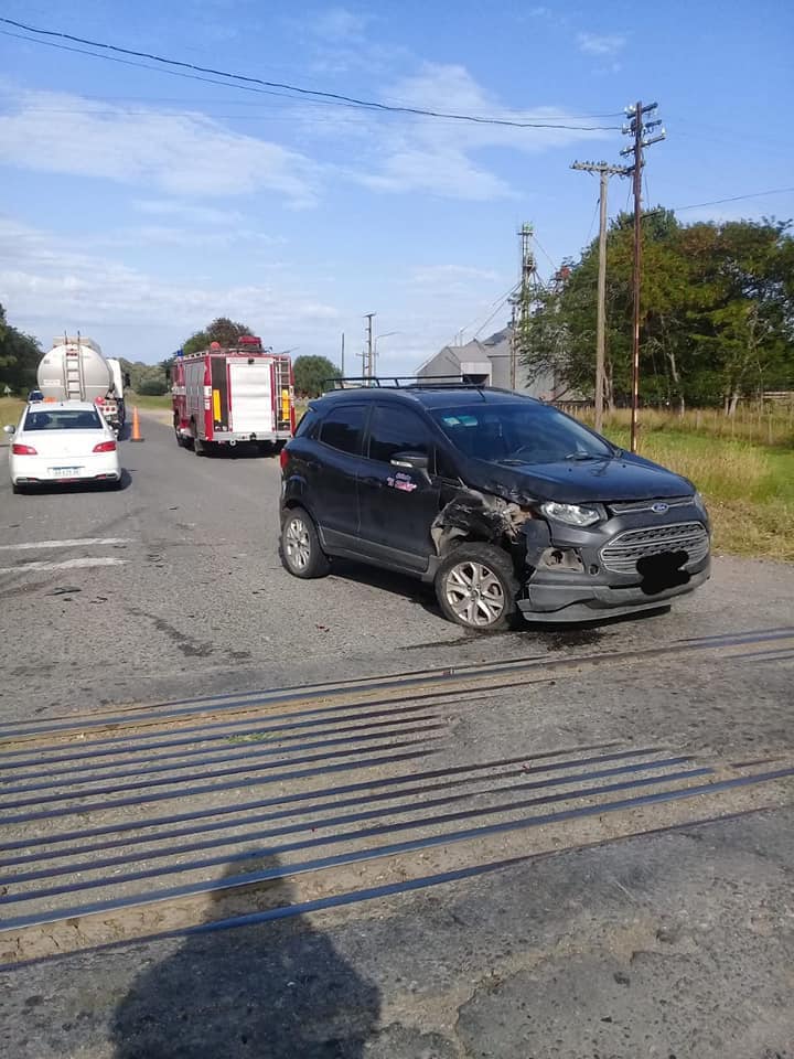 En la mañana de este sábado se produjo un choque en cadena, entre tres vehículos en el paso a nivel de la ruta 74. No hubo heridos sólo daños materiales. Intervino el destacamento de Bomberos de la localidad de Las Armas.