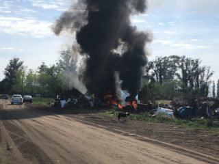 Ayacuchoaldia.com.ar estuvo allí donde donde pudimos observar que dos unidades fueron necesarias para combatir el intenso fuego. Una intensa Columba de humo se pudo ver desde distintos sectores de la ciudad como consecuencia que tomaron fuego neumáticos además de distintos elementos que ardieron.