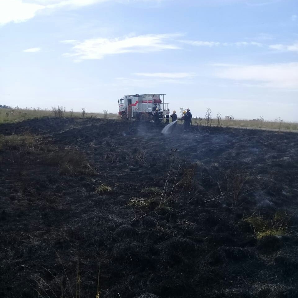 Concurrió al lugar una dotación a cargo del Comandante y 2do Jefe de Cuerpo Juan Garberi, con las unidades número 22 y 23. Arribados al mismo se constató que se trataba del incendio de pastizales en una dimensión de 2500 M2. Se procedió a realizar tareas de extinción y enfriamiento de la zona afectada, finalizando el servicio a las 18.00 hs.