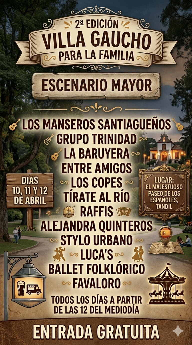 Los días 10, 11 y 12 de Abril, la ciudad de Tandil será escenario de la 2ª edición de “Villa Gaucho para la Familia”, un evento pensado para disfrutar en comunidad, con una amplia programación artística y cultural.