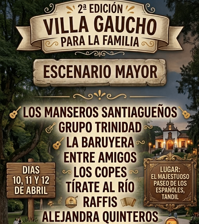 Los días 10, 11 y 12 de Abril, la ciudad de Tandil será escenario de la 2ª edición de “Villa Gaucho para la Familia”, un evento pensado para disfrutar en comunidad, con una amplia programación artística y cultural.