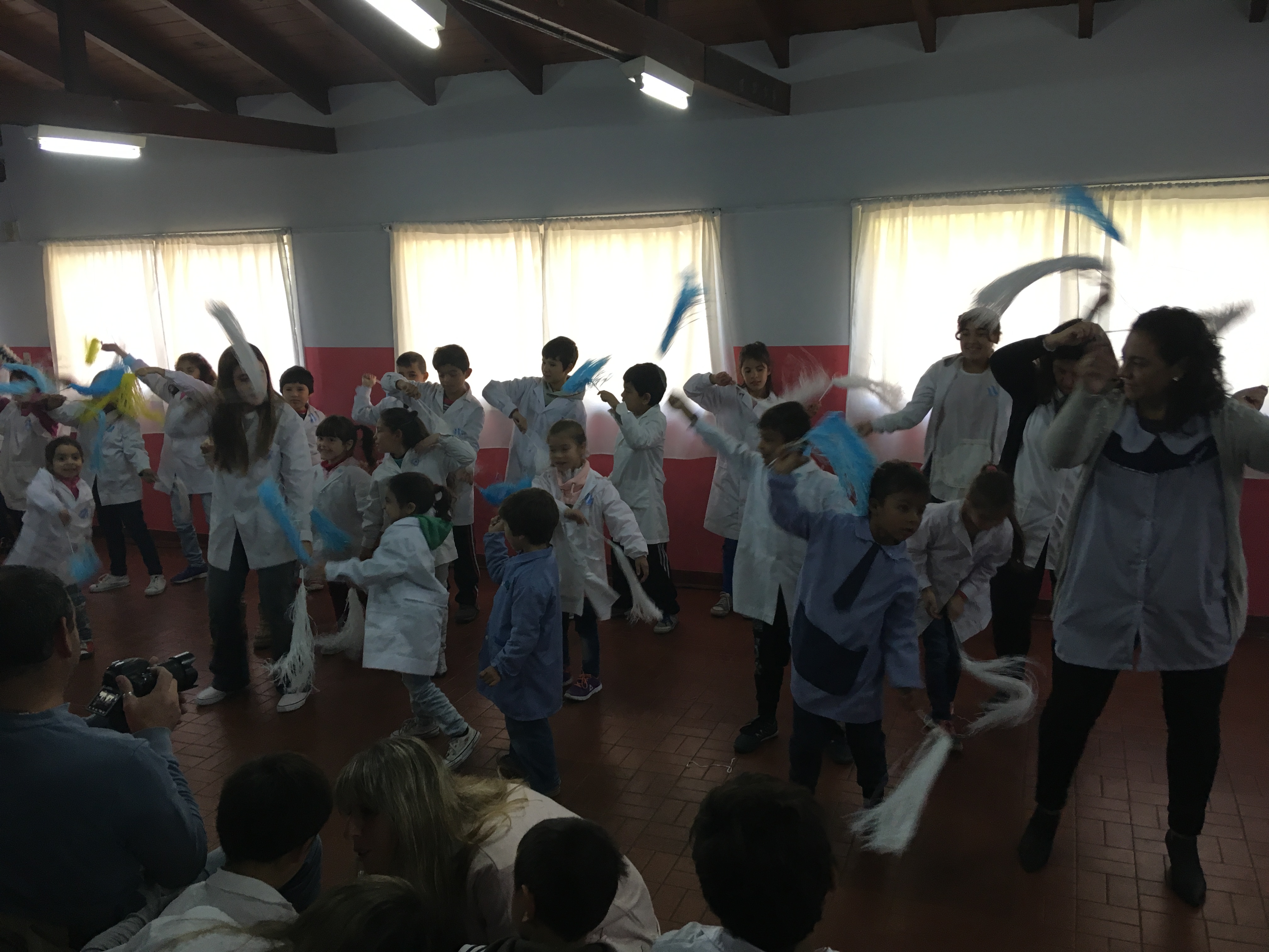 Sobre el final y luego de compartir un rico chocolate caliente con masitas para la ocasión, se invitó a todos los presentes a visitar uno de los pasillos de la entidad donde los esperaba una muestra con los trabajos realizados por los chicos junto a sus docentes, que fueron sobre cocina para los de Nivel Inicial, el grupo A1 que trabajó sobre artículos rurales tras una visita al Museo Histórico Regional, el grupo B1 sobre los diferentes medios de transporte de la época, y el A2 sobre instrumentos musicales de aquel entonces.