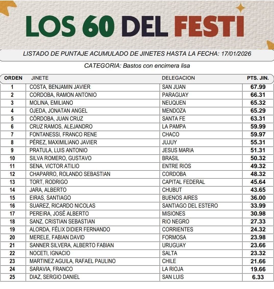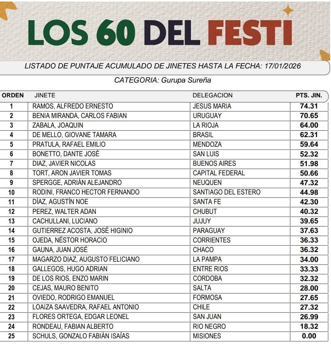 Los ayacuchenses Rodrigo y Aron Tort en la etapa final del Festival 2026 18 enero, 2026 Pablo Tusq Campo, campo DIA, destacados 0 ESUS MARÍA PUNTAJES POSICIONES Los ayacuchenses entran en la etapa definitiva del festival cordobes; X