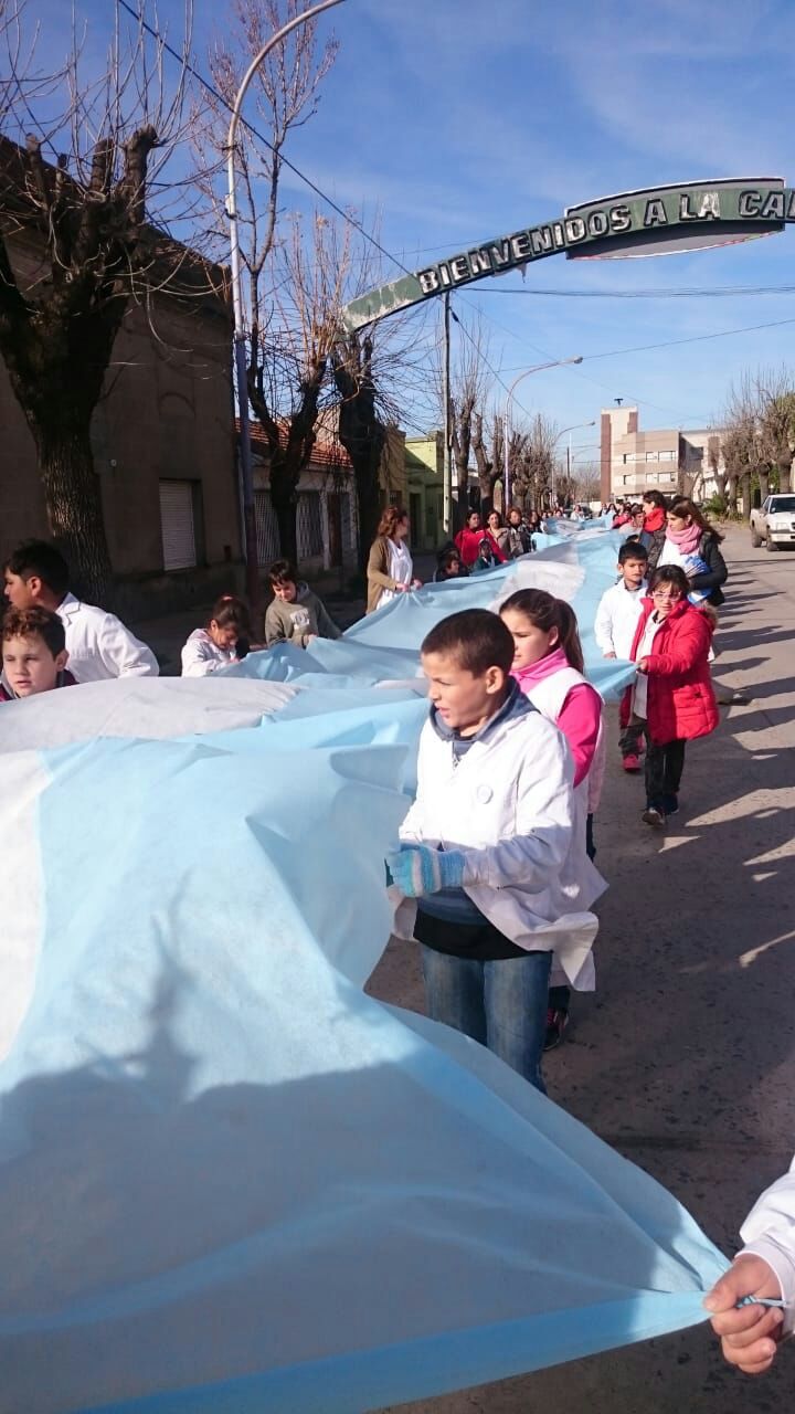 Con una caminata desde la Escuela 4 y hasta la Plaza San Martín, portando una larga bandera argentina que portaron, con la idea de entregar souvenirs y contar sobre las actividades que realizan a diario, los chicos del establecimiento mostraron lo suyo como víspera del Día de la Bandera.