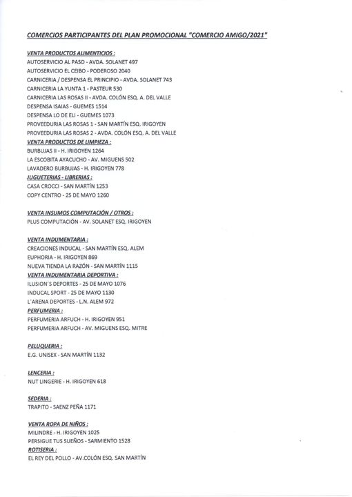 Desde la Cámara de Comercio informaron sobre los comercios adheridos hasta este 13 de Abril, al Plan Promocional Incentivo de Ventas «Comercio Amigo”. La Cámara incluso reitera la invitación a todos los comercios que quieran ser parte del mismo podrán adherirse en la sede social o bien ponerse en contacto con algún miembro de Comisión, siendo la inscripción absolutamente gratis.