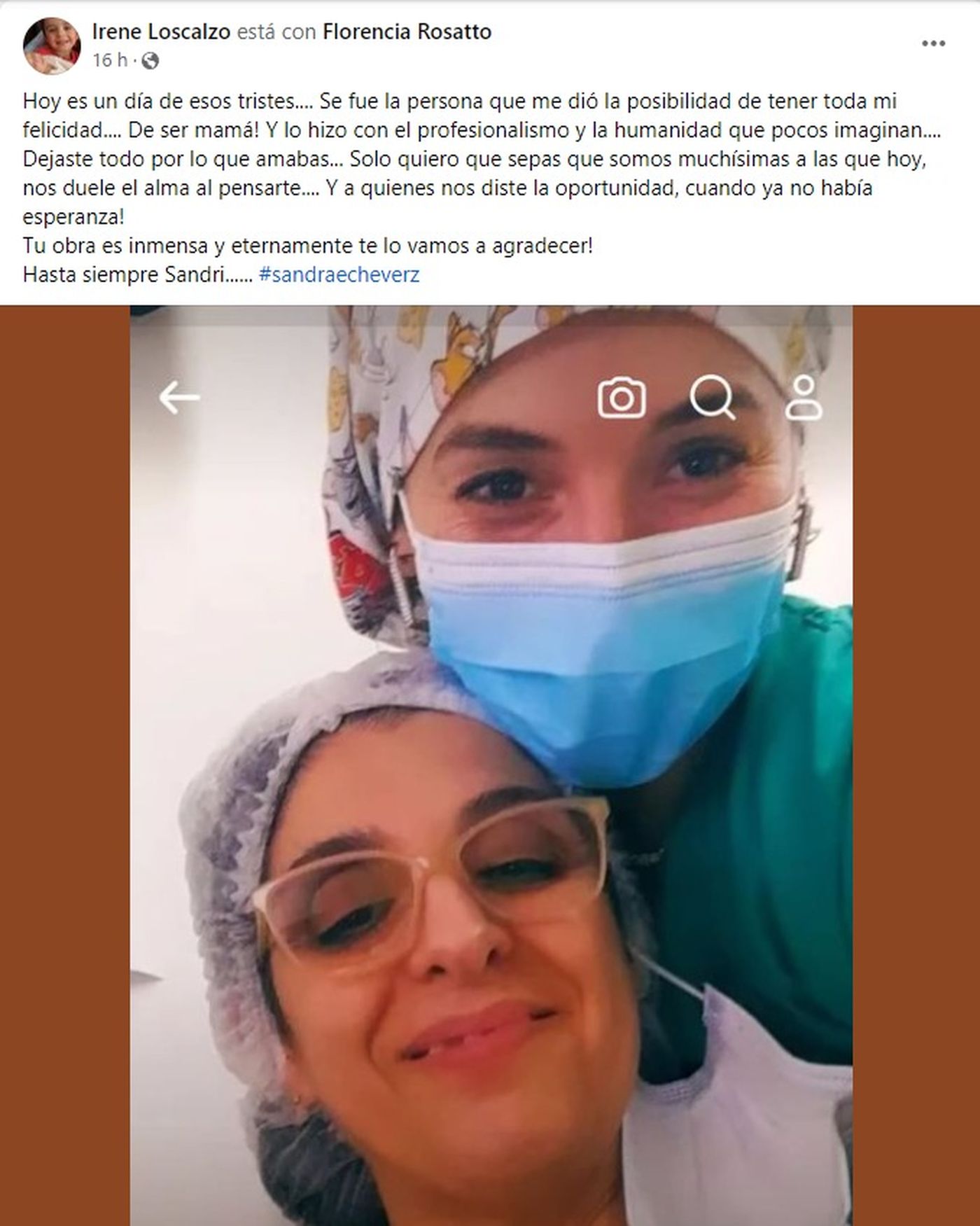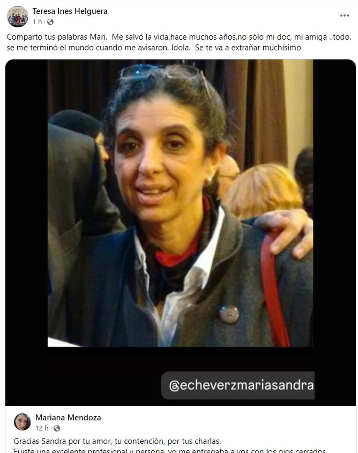 Además, a los posteos de despedida se sumaron comentarios de pacientes, colegas y alumnos: «Humana, empática, solidaria, protectora. Siempre va a estar presente en sus milagros, en sus nietos, como me decía», comentó Cristina Savarese; «Cuanta tristeza e impotencia, saber que se fue una gran médica que salvo muchas vidas y ayudó a muchas familias. Sencilla, humana, cariñosa, servicial, atenta. Una médica excelente. Por qué no te conocí antes. Te voy a extrañar», agregó Virginia Santos. «¡Qué tristeza! La conozco desde el amor de sus pacientes, que me han hablado de ella, de su profesionalismo y humanidad. Sin duda, dejó muchas huellas de amor en este mundo desde donde será siempre recordada», sumó Diana Patalagoyti a los cientos de comentarios afectuosos.