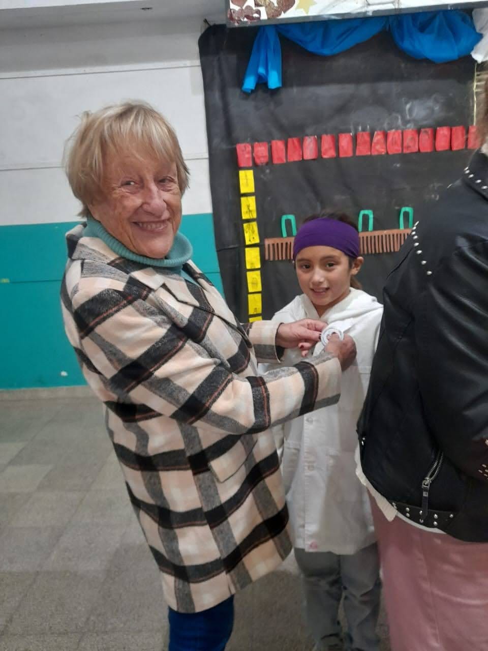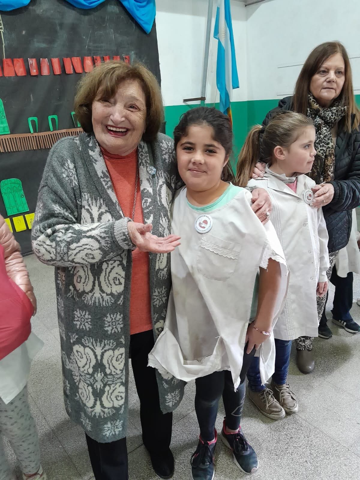 En un clima de alegría pero también de emoción, la Directora explicó a los niños el motivo de la visita, realizando un breve y claro relato sobre las inquietudes que motivaron la creación del hermoso Coro de Lengua de Señas con alumnos. Y comentó que los distintivos que vino a donarles la comisión, lucirán sobre su pecho por primera vez, en el Acto Oficial del 25 de Mayo.